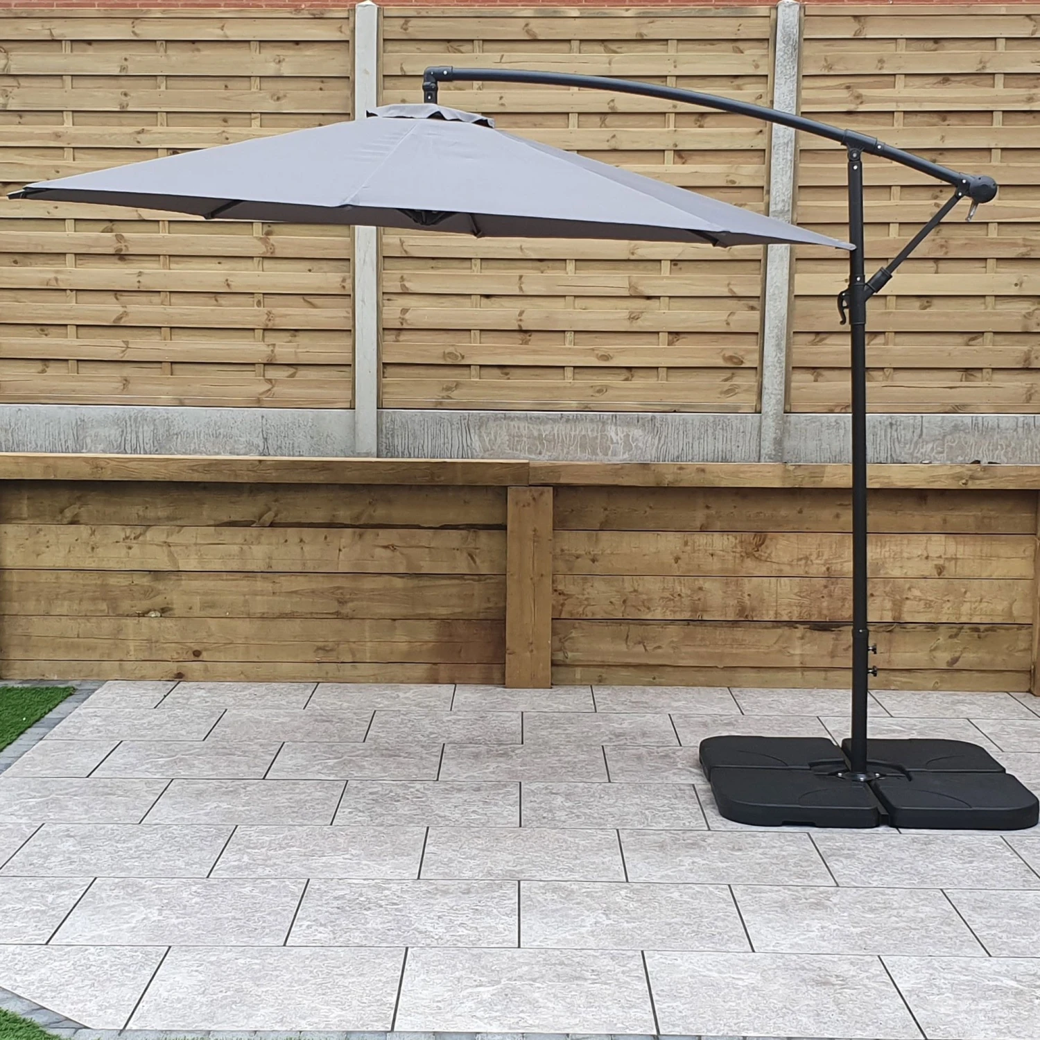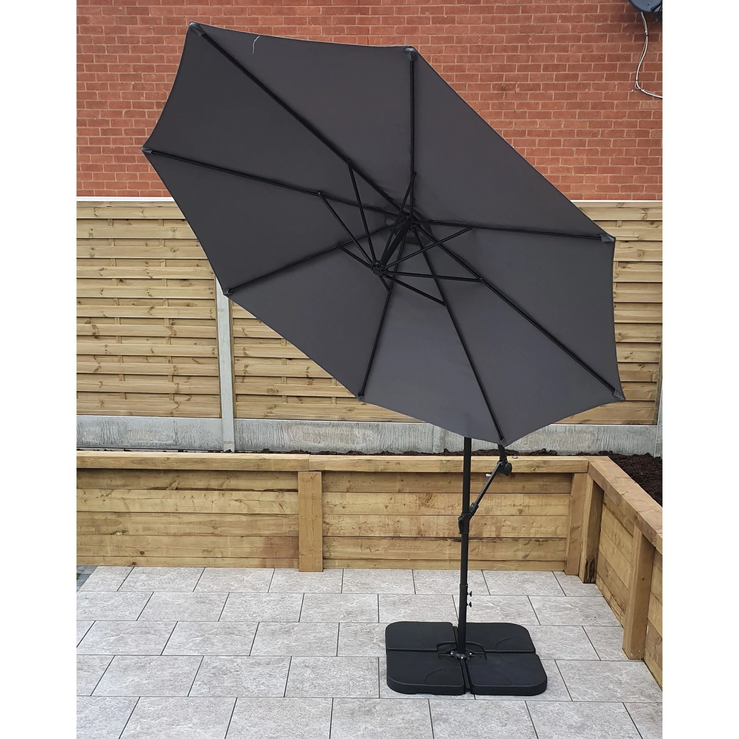 This minimalistic 3m Banana Parasol with Grey Canopy is crafted with Polyester with a PA coating giving a water repellent design. The parasol has a crank handle to raise and lower the 3m canopy and comes with a handle to wind it up and down easily. This adjustable parasol is a great addition for your garden or outdoor space whilst shading from the sun.