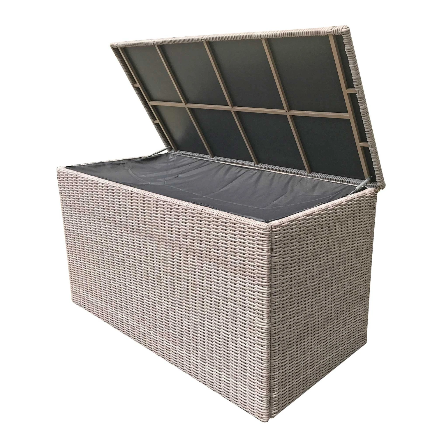 Store away dining cushions and other bits and pieces in this 8mm Half Round Weave Grey Rattan Large Cushion Box! Made from strong and durable 8mm half round weave, this large cushion storage box is finished in grey rattan and is ideal for outdoor use.