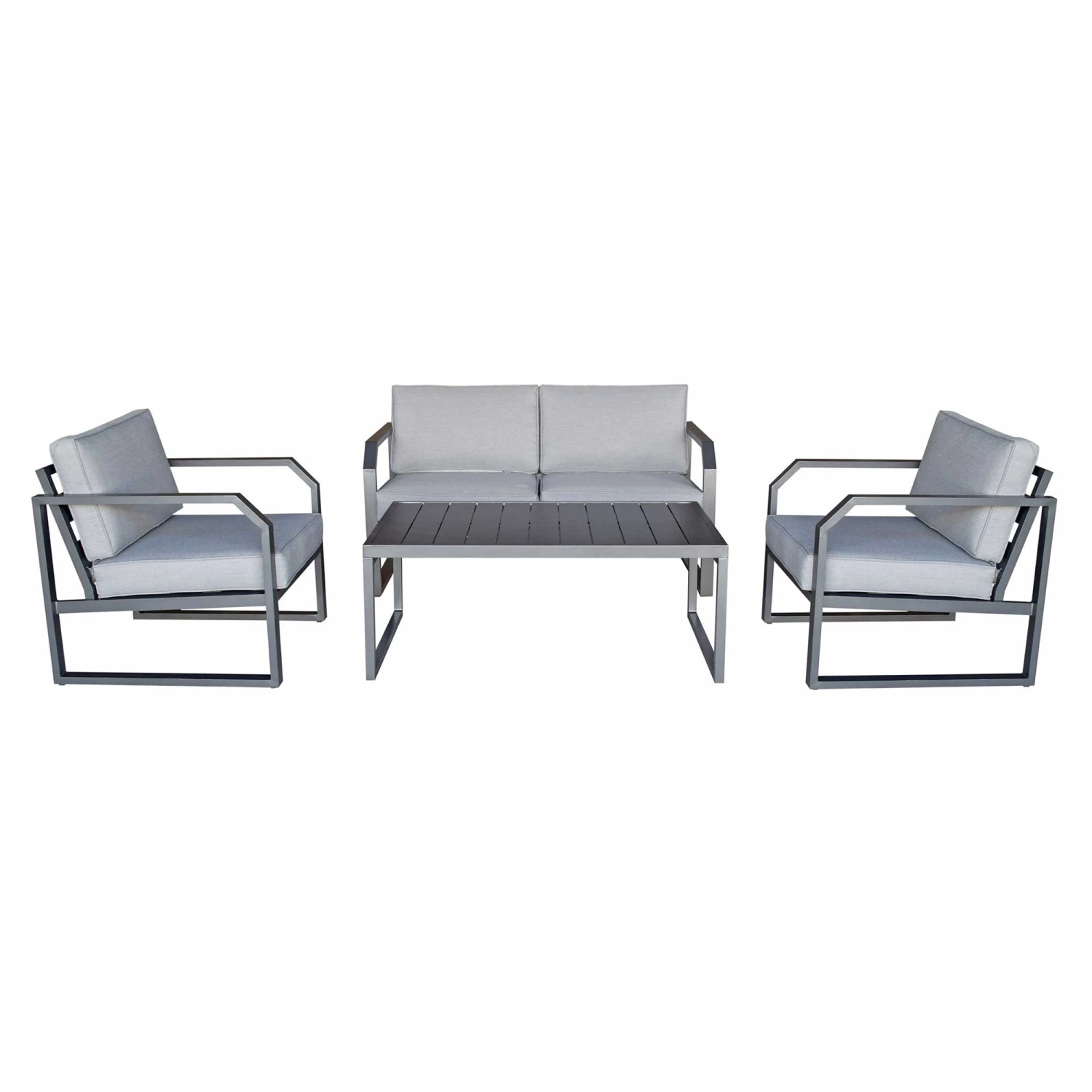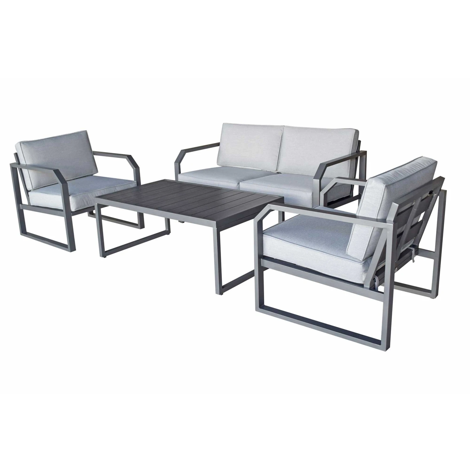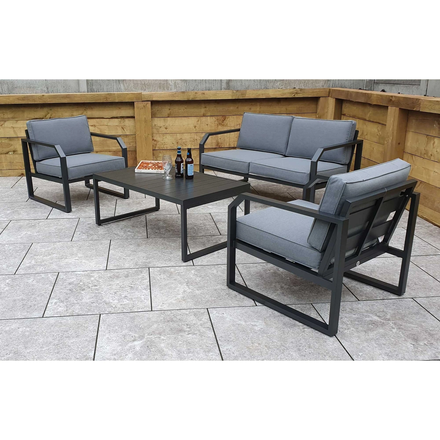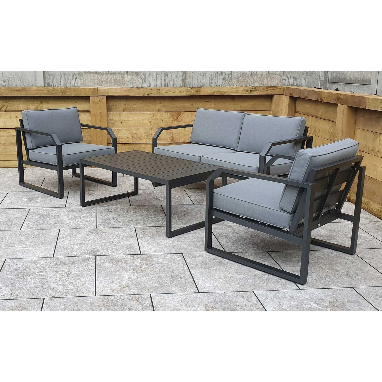 Bring everyone around the garden with this Alarna Grey Aluminium 4 Seater Sofa Set! Ideal for gardens and outdoor spaces of any size, this corner sofa set will comfortably seat up to 4 people. The seats are complete with grey powder coated aluminium frames and grey cushions complementing any garden! Supplied with matching coffee table with aluminium table top.
