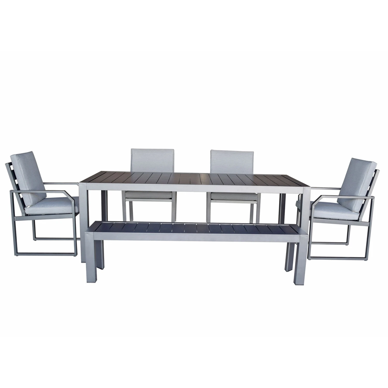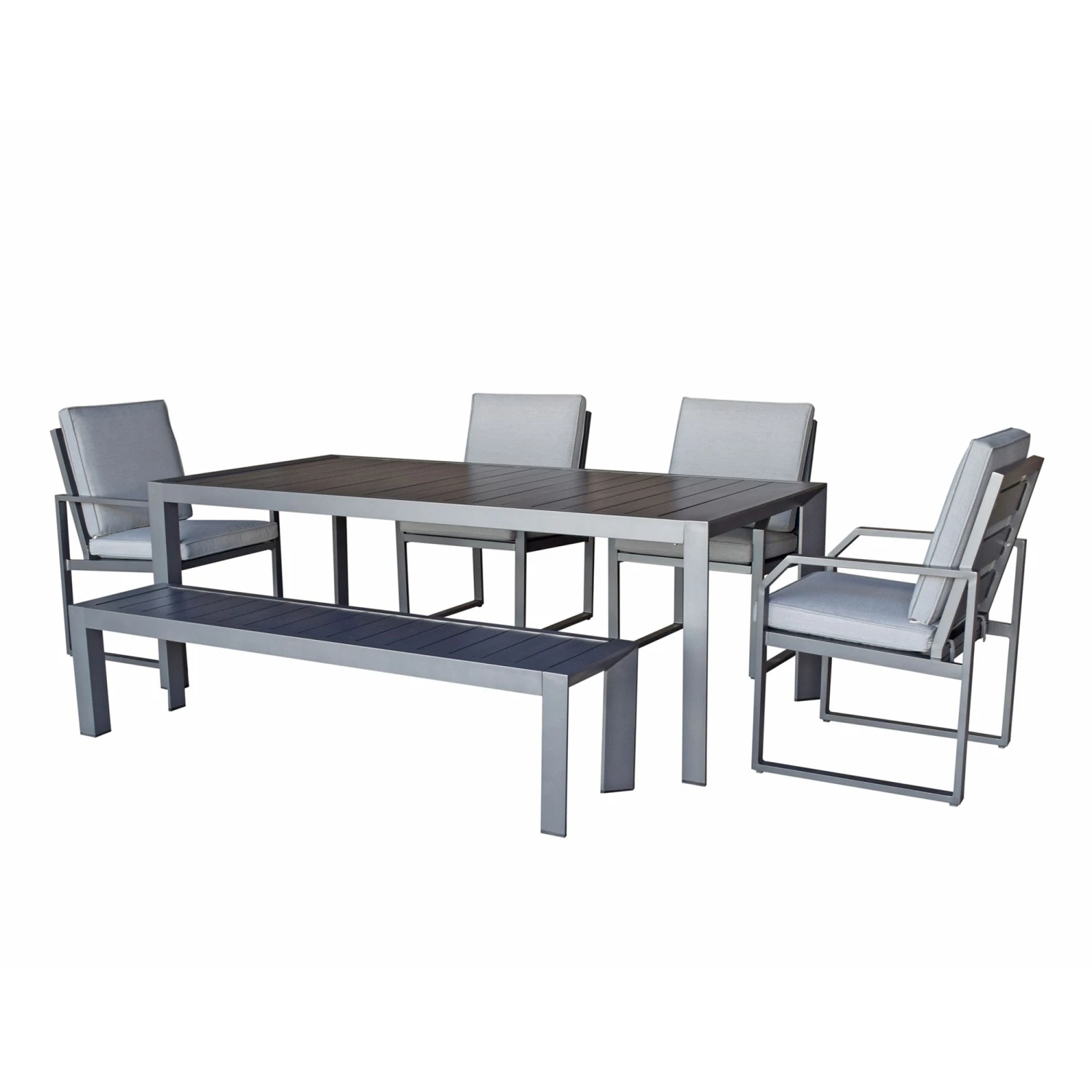Alarna Grey Aluminium Dining Set With Bench And 4 Chairs
