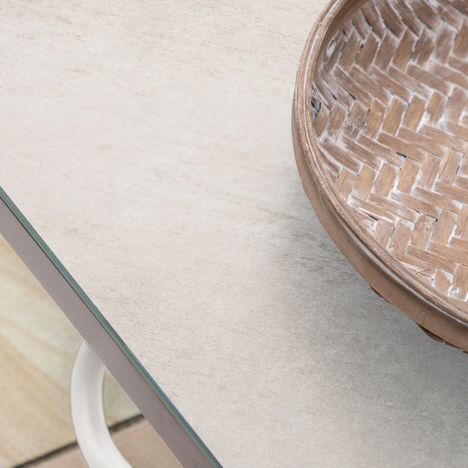 This Ancona Linen Corner Lounge Set comes in a stunning summer linen shade to add a touch of luxury to your garden or pool area. The set comes with a beautiful corner sofa and coffee table. Sitting on white aluminium frames the set features seats that are fully upholstered in all-weather fabric and are padded with quick drying foam, the seats are resistant from fading, mould and stains. The rectangular table has a glass top with a ceramic effect finish.