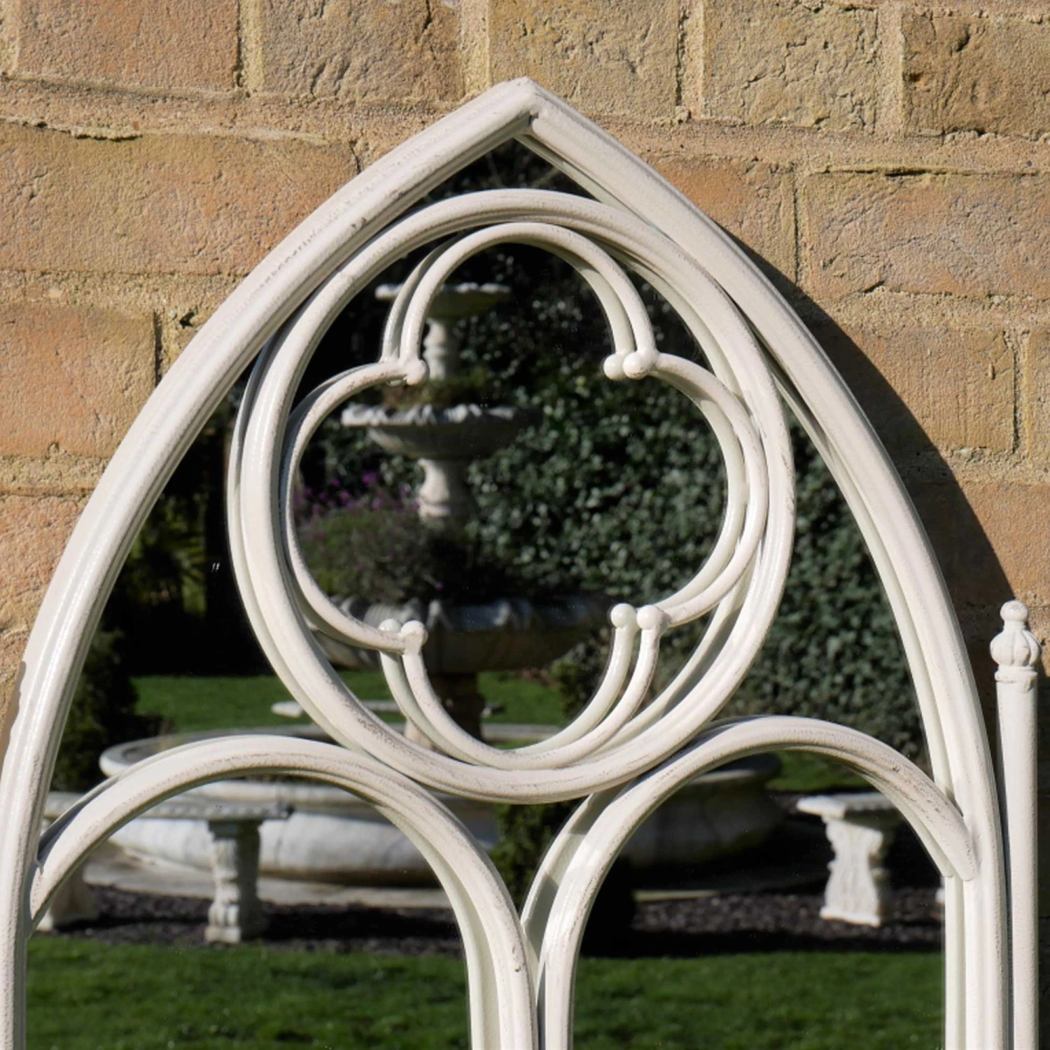 This Arched Gothic Garden Mirror is elegant and timeless in design and provides a touch of vintage in the garden. Perfect for small gardens and outdoor spaces, this off white garden mirror will look great hung to the exterior of a building, resembling a church window.