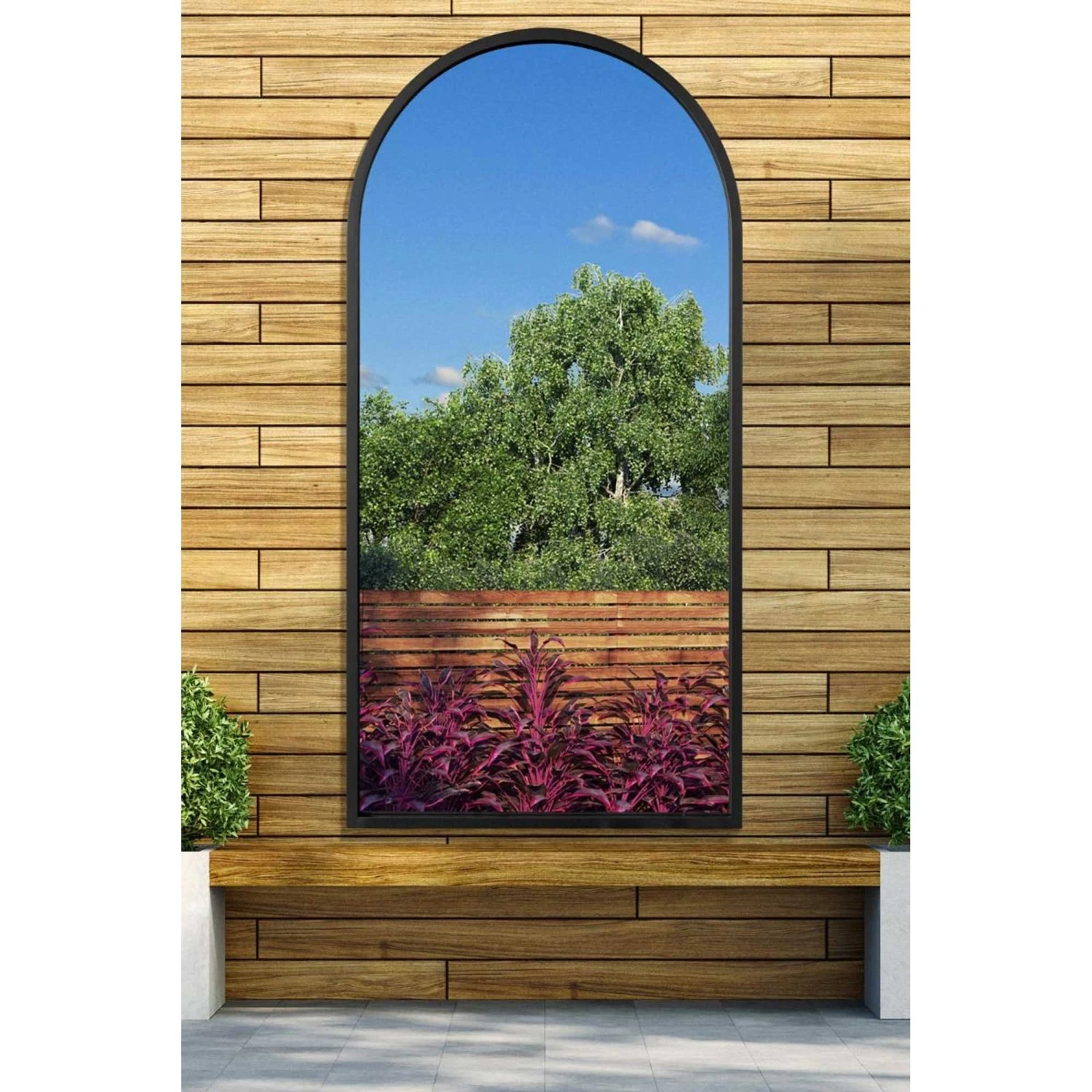 Add a new dimension to your garden with this Arcus Black Metal Framed Arched Wall Garden Mirror. Crafted from glass with an arched top and black metal frame, it has a simple but modern design and can be hung on a wall or garden fence. Perfect for opening up your garden space or reflecting the beauty of your flower beds, it will make a lovely addition outdoors.