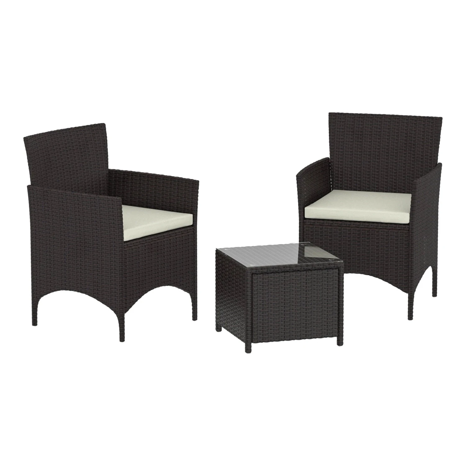 Complete with 2 chairs and a square glass topped table, this Bali Brown 2 Seater outdoor furniture set makes a stylish addition to spruce up your outdoor exterior. Crafted from rattan wicker and glass, it’s durably built to be long-lasting and is protected to ensure you can use it all year round. Perfect for 2 people to enjoy a drink in the sun, have a catch-up with a friend or to eat together outdoors, it will be a welcome addition as a modern little bistro set. Finished in a brown shade, it has foam filled cushions to ensure maximum comfort for sitting for long periods.