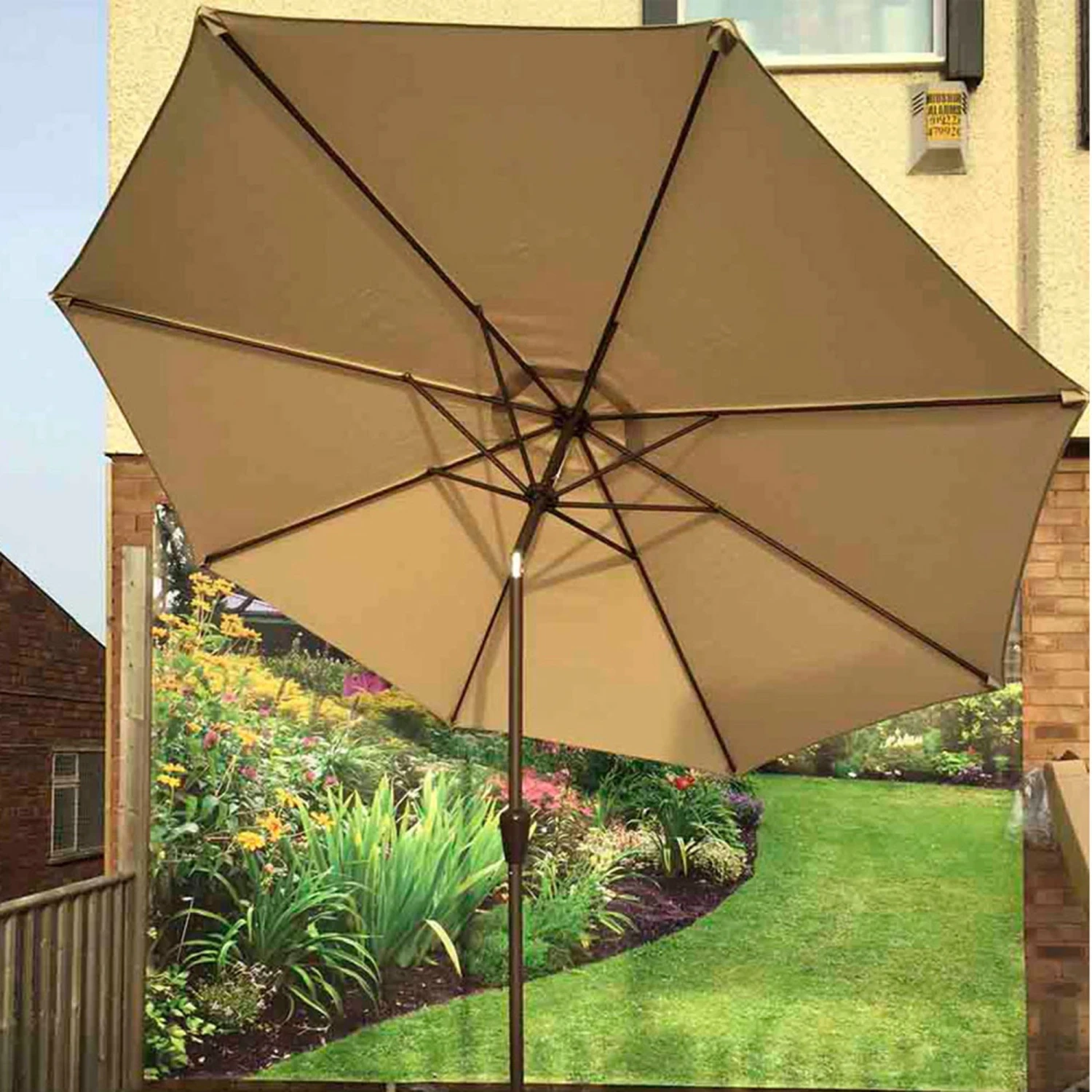 Creating shade in your garden with this Beige Table Parasol and shelter from the sunshine. This outdoor parasol spans 2 x 3 metres wide and is finished with a brown frame with a subtle beige canopy. This garden parasol is heavy-duty and is made with polyester to withstand all weather conditions including heavy rain and sun.