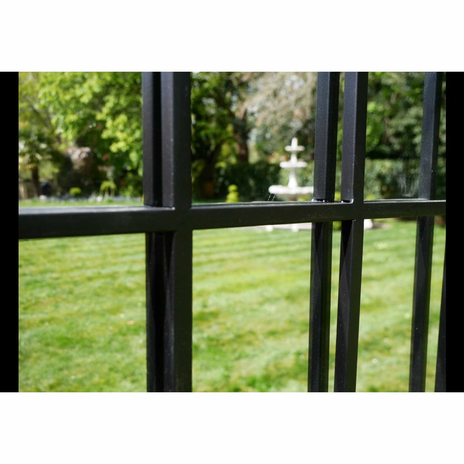 Decorate the interior or exterior of any building with this Black Industrial Outdoor Mirror. The mirror is uniquely framed with a black metal industrial design frame, with a grid look. Ideal for indoor and outdoor use.
