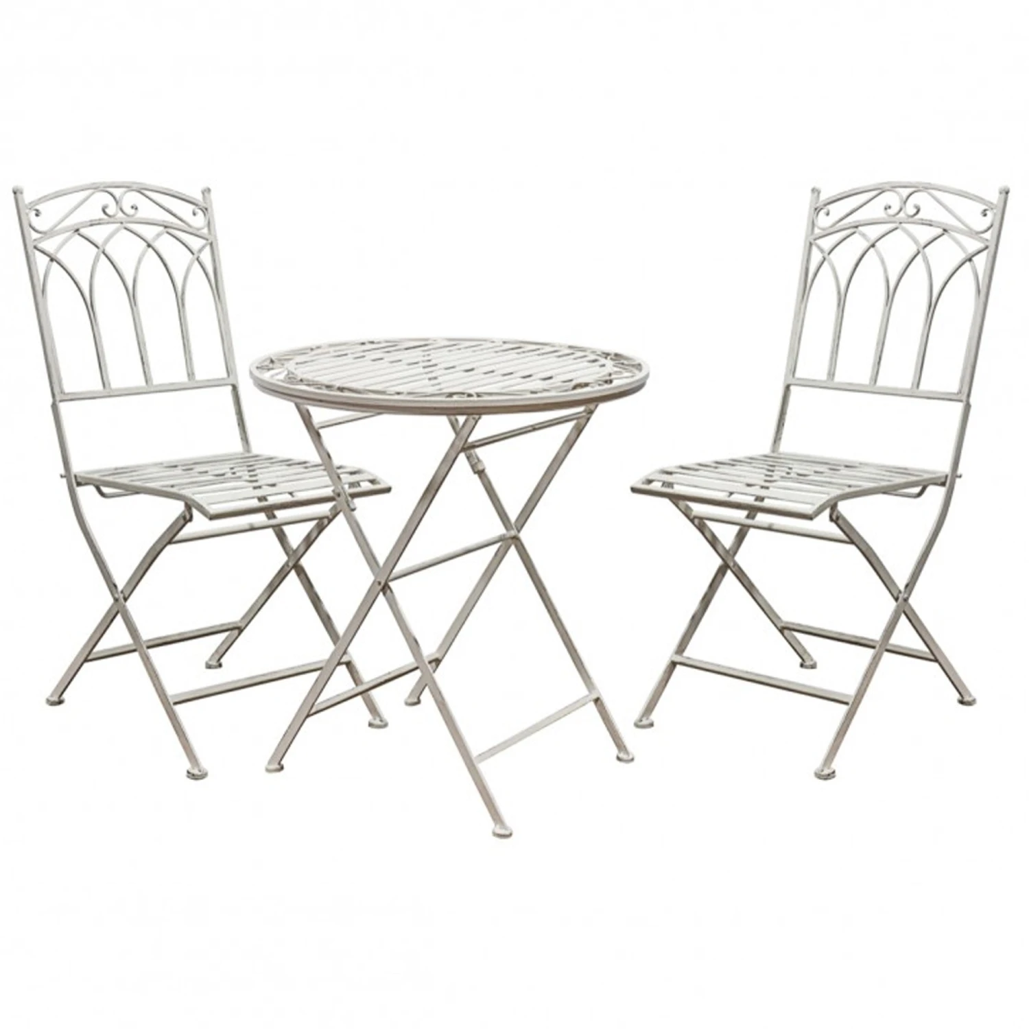 The Burano Outdoor Bistro Set Gatehouse is the perfect addition for your outdoor space, this versatile piece creates a stunning and practical seating area where ever it is placed. Finished in a distressed painted white and featuring decorative detailing, with a table and two chairs, all fold able for easy storage, this is the perfect set for two.
