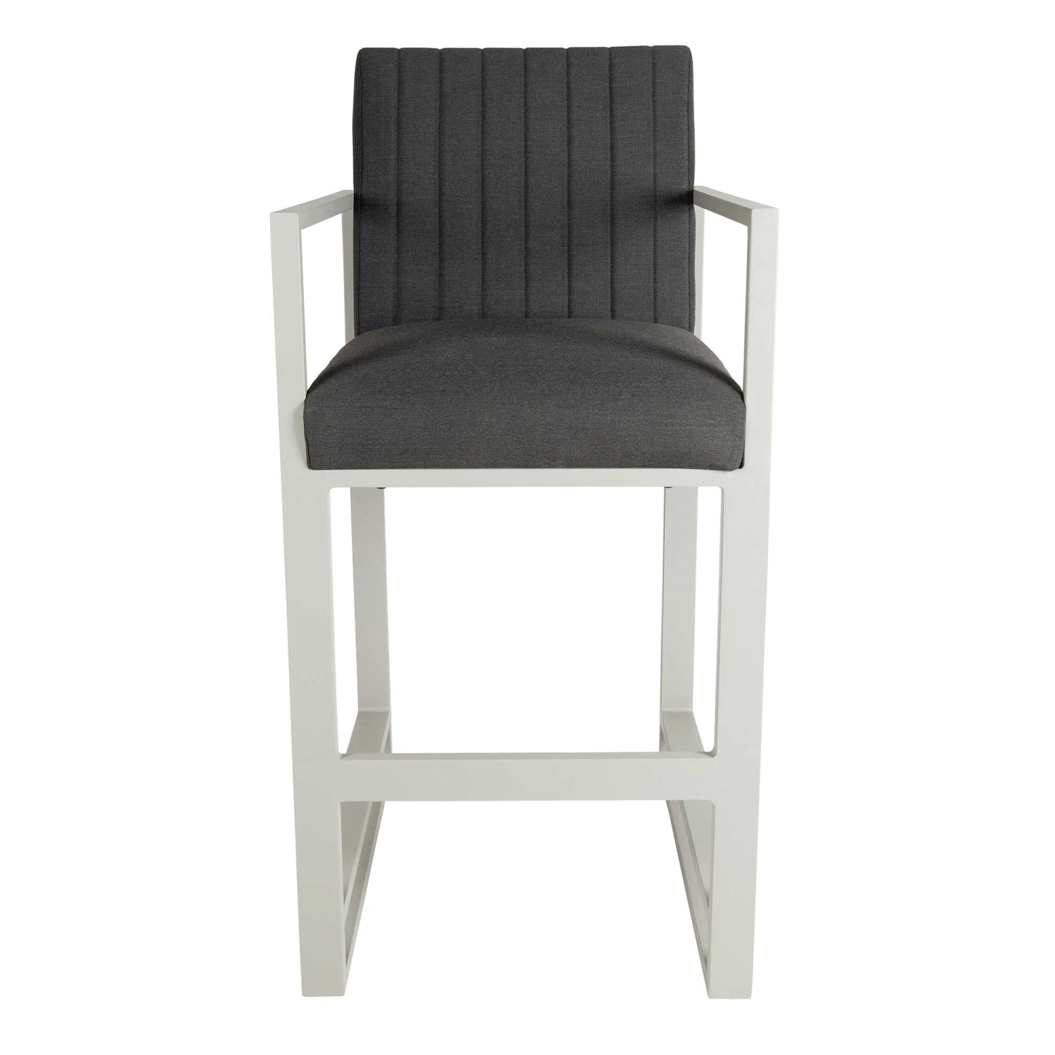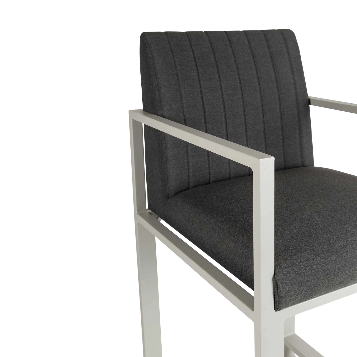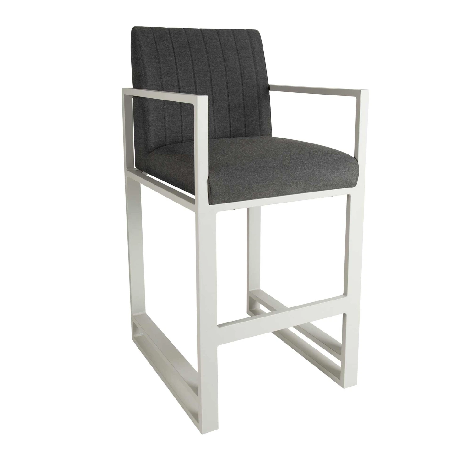 This Dark Grey Straight Back Outdoor Bar Stool is ideal for use with any bar table! Upholstered in Dark Grey water and stain resistant fabric, this bar stool will instantly enhance any drinking experience! This bar stool is made with aluminium rust proof frames, making it ideal for all weather conditions. Also available in Light Grey.