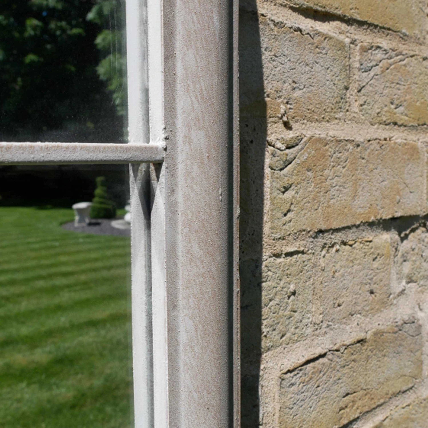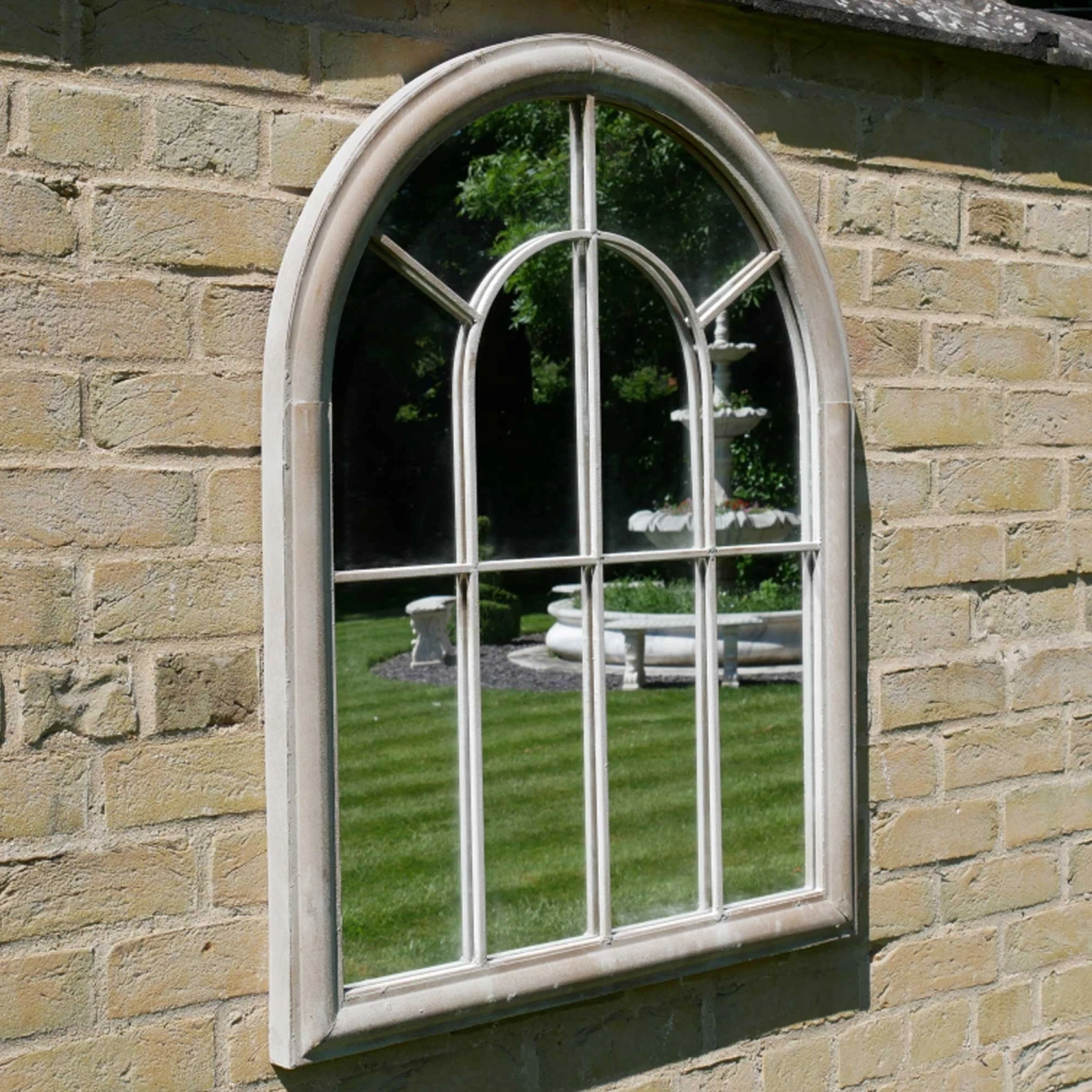 Decorate your home exterior with this rustic looking Decorative Arched Outdoor Garden Mirror! Designed with multiple mirrored panels, this window mirror is perfect for adding to your outdoor landscape. This beautiful mirror is made of metal and is weather resistant.