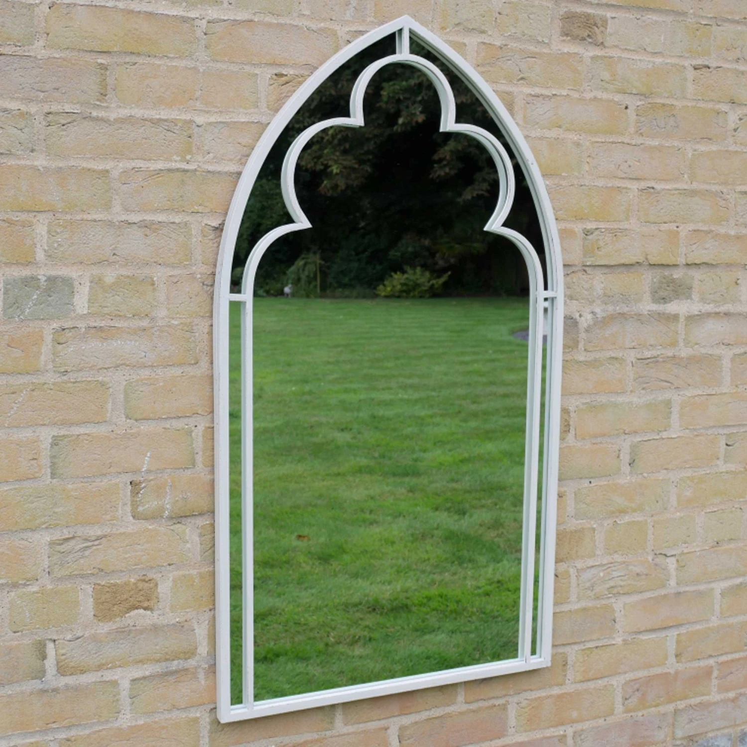 Reflect your garden space in this beautiful Decorative White Arched Garden Mirror! Ideal for wall mounting to any building, this arched garden mirror focuses on a simple design and is finished in a sleek white frame. Made from metal and suitable for all weather conditions.