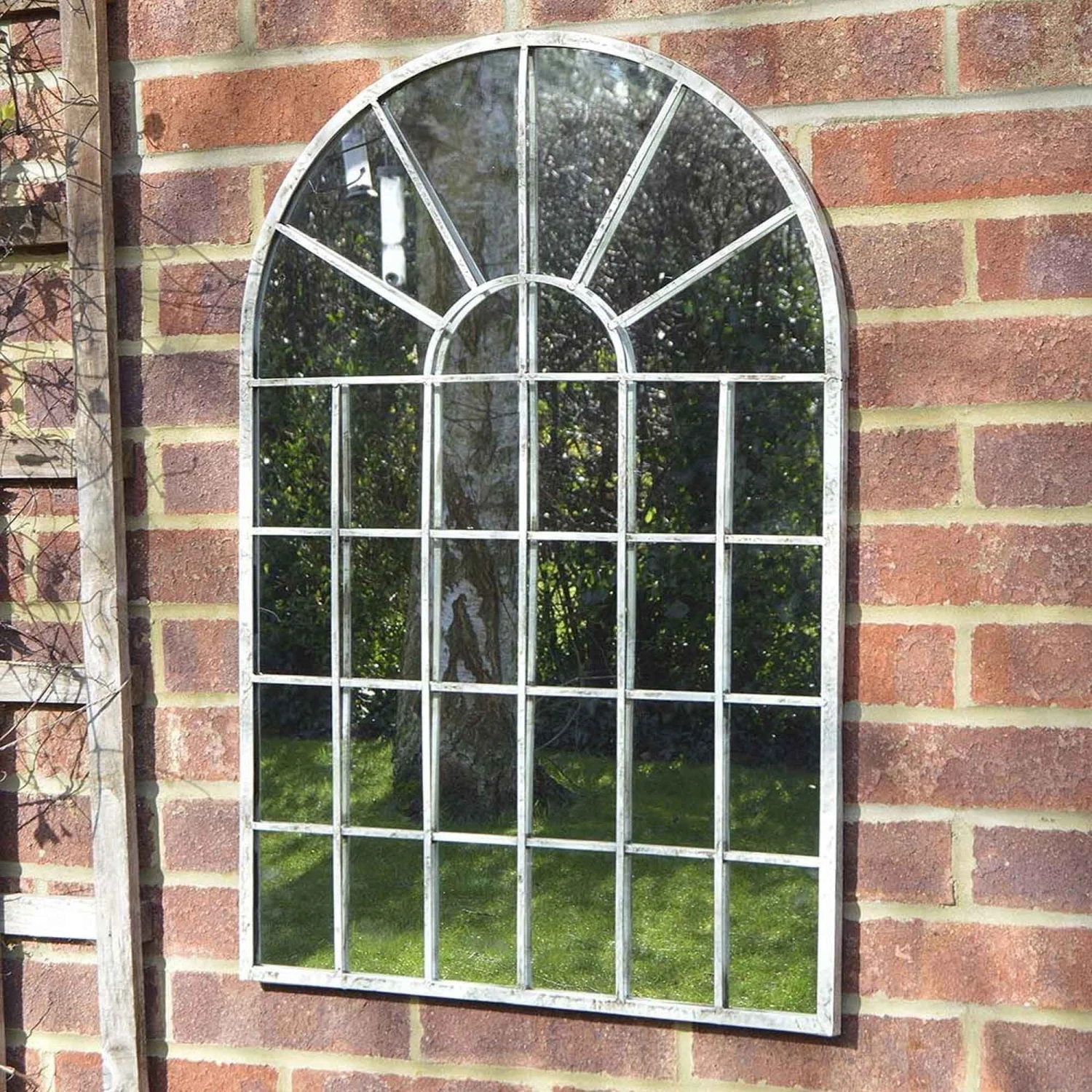 This beautiful Dorset Country Arch Garden Mirror is perfect for adding extra detail to your garden this summer. Coming in an on-trend popular arch design, this large mirror will immediately reflect the natural beauty of your garden, making it look bigger and adding extra style. Featuring a grid style design on the mirror front, it has a grey rustic metal frame that is hard wearing and comes with a frost-protected feature that ensures that it can withstand any weather condition. Versatile to be hung both indoors and outdoors, this mirror is a classic design that will draw attention.
