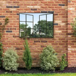 Kirkby Large Metal Open Window Garden Wall Mirror – 100x73cm