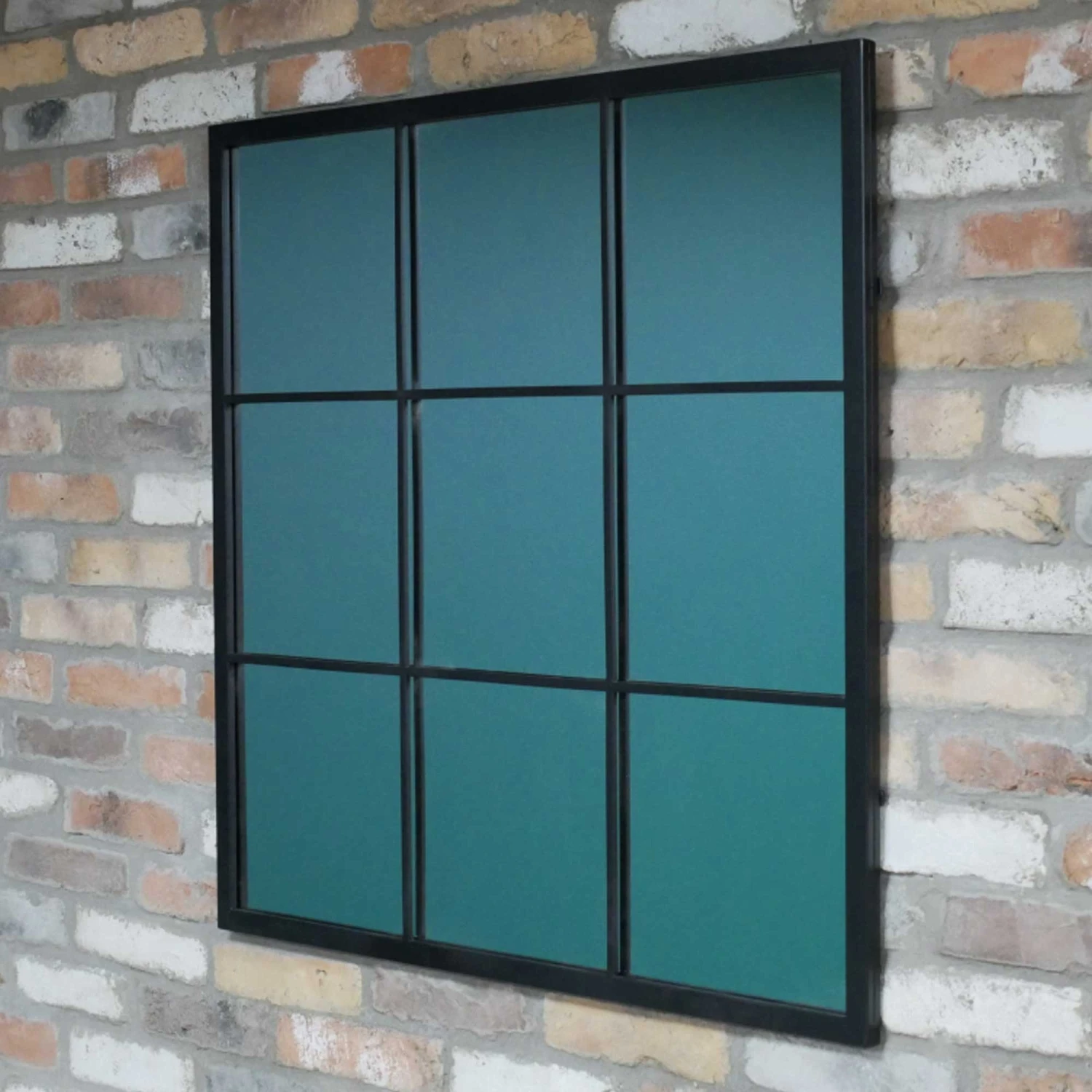Add this Industrial 9 Section Mirror to any wall for a multipanel reflection! Complete with a black metal frame, this industrial mirror will make a beautiful finishing touch to any home.