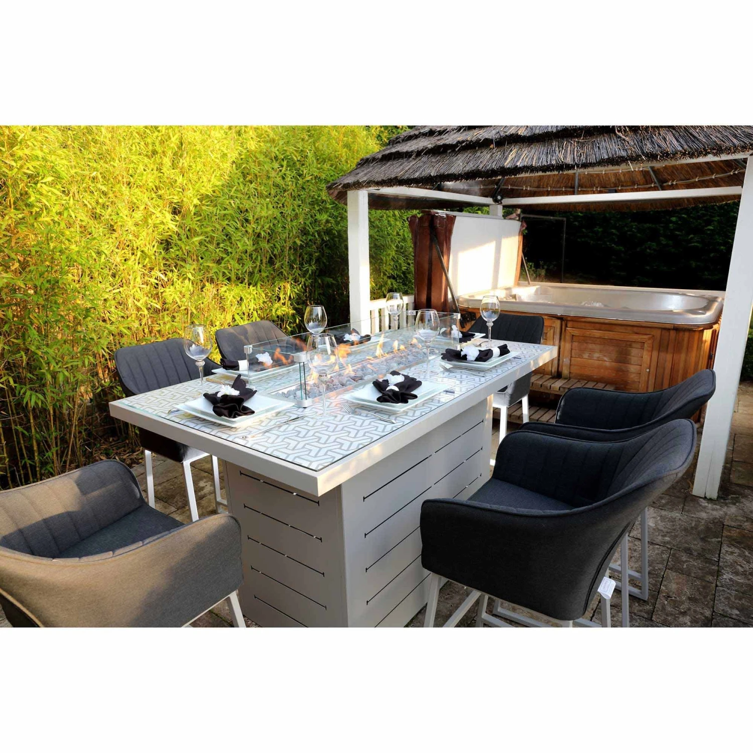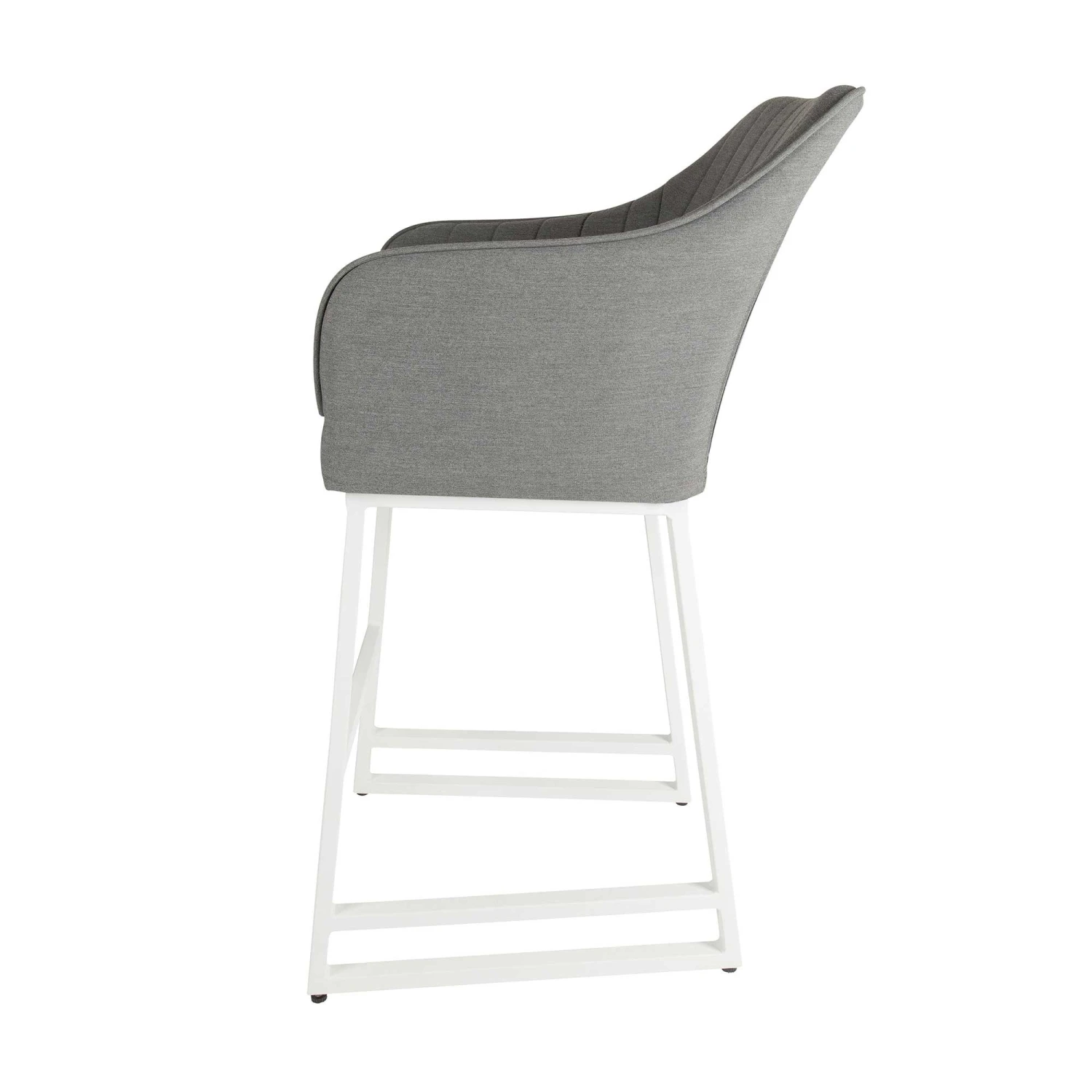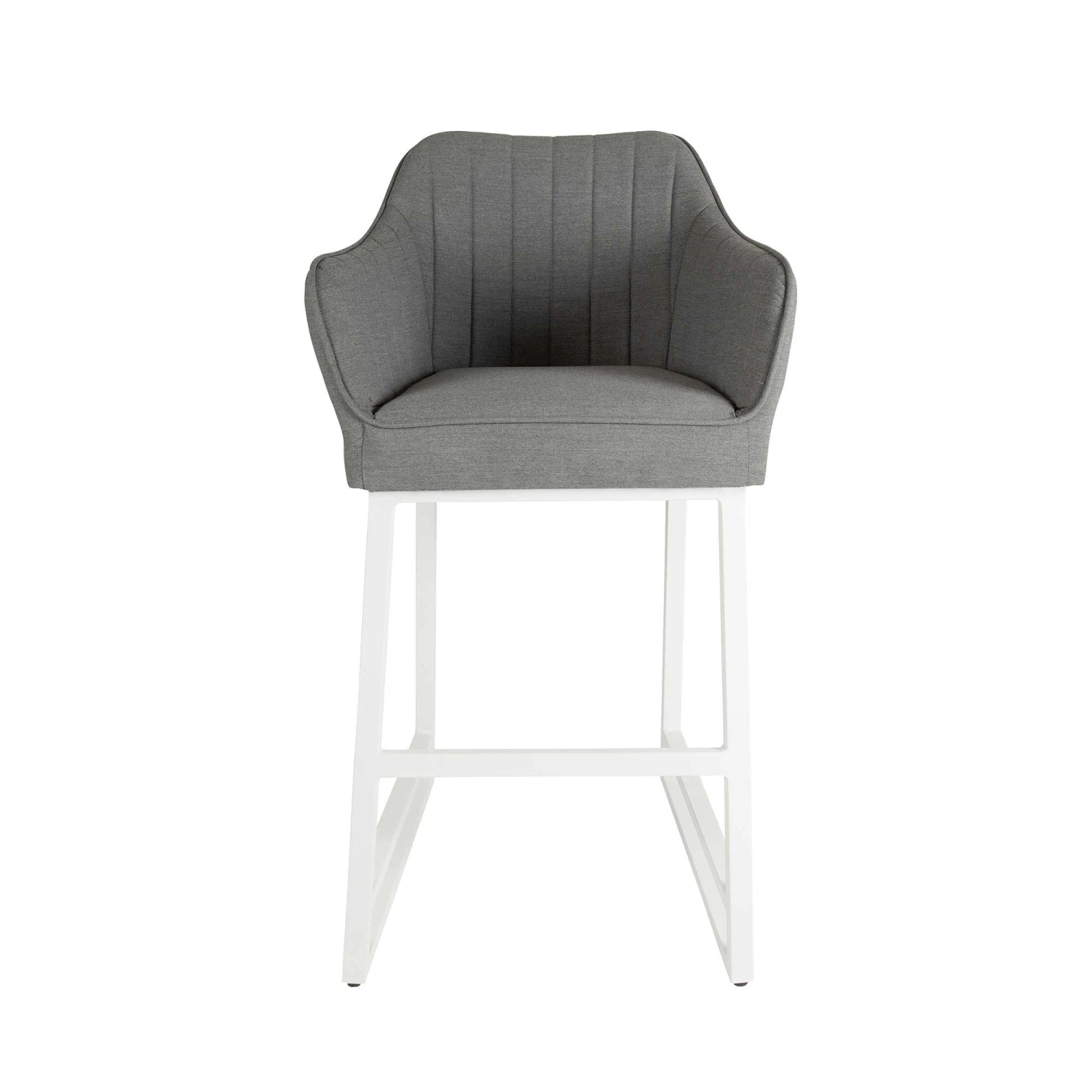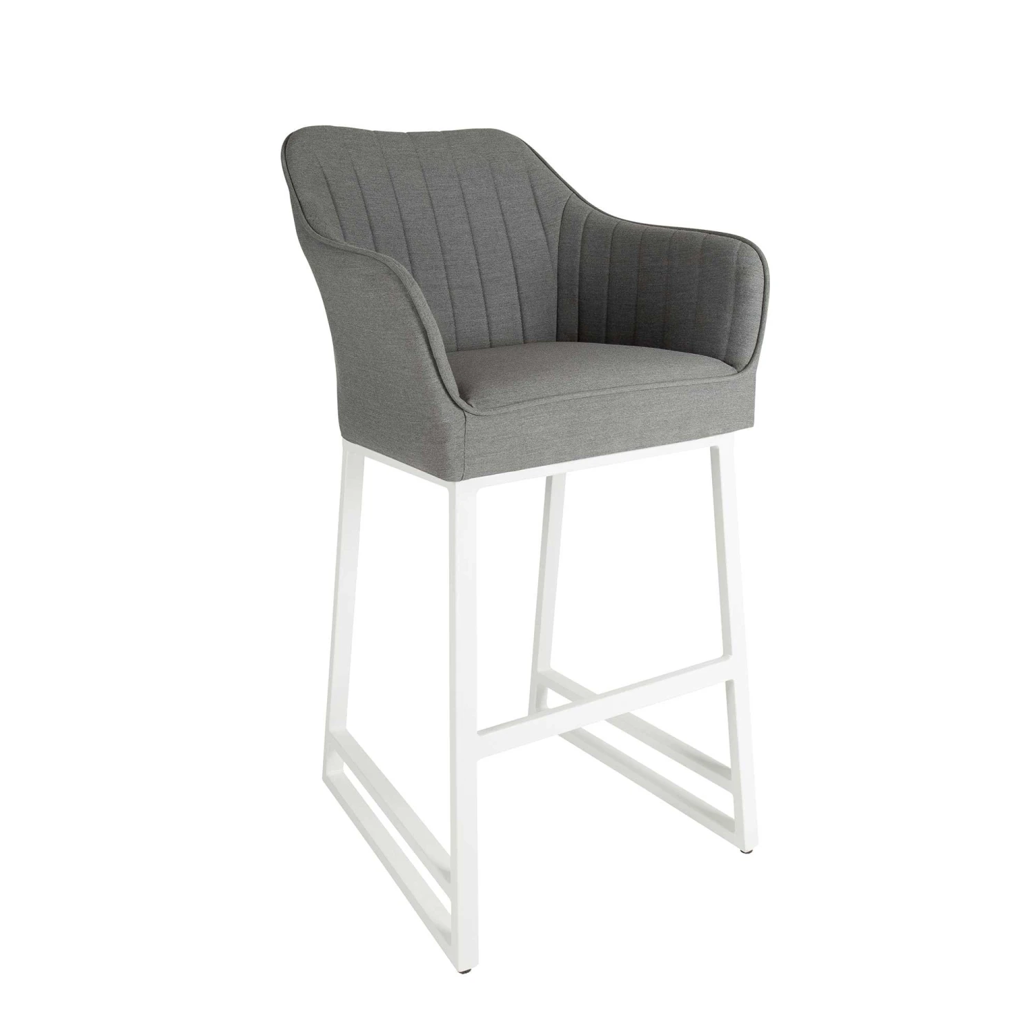 Complete your garden furniture collection with this Light Grey Curved Back Outdoor Bar Stool! This premium bar stool is upholstered in Light Grey water and stain resistant fabric, and features a curved back design for extra comfort. The modern bar stool is designed with an aluminium rust proof frame and quick dry foam, suitable for all weather conditions. Also available in Dark Grey.