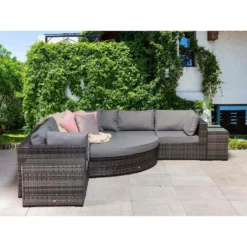 Complete your garden set-up with this Mylor Black 4 Seater Rattan Set, consisting of a 2 seater sofa, 2 chairs and a glass topped table that will seat up to 4 people at a time. Comfortable and stylish, manufactured from rattan wicker, in a black finish, it will be perfect to relax on, lounge in the sun or even dine at. Gather the family together for a birthday, party or BBQ, it’ll be a great addition to spruce up your outdoor patio area.