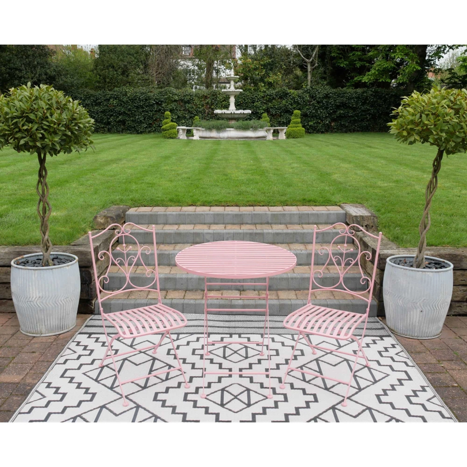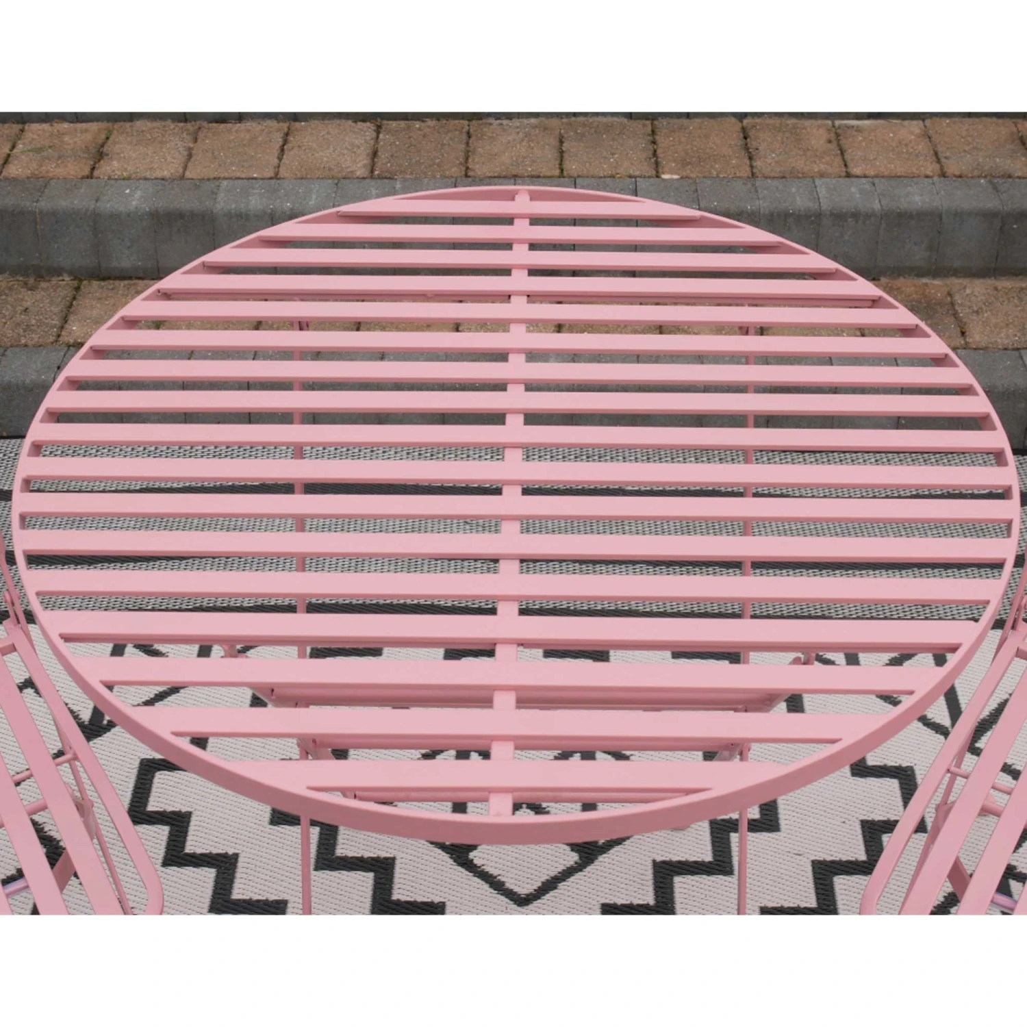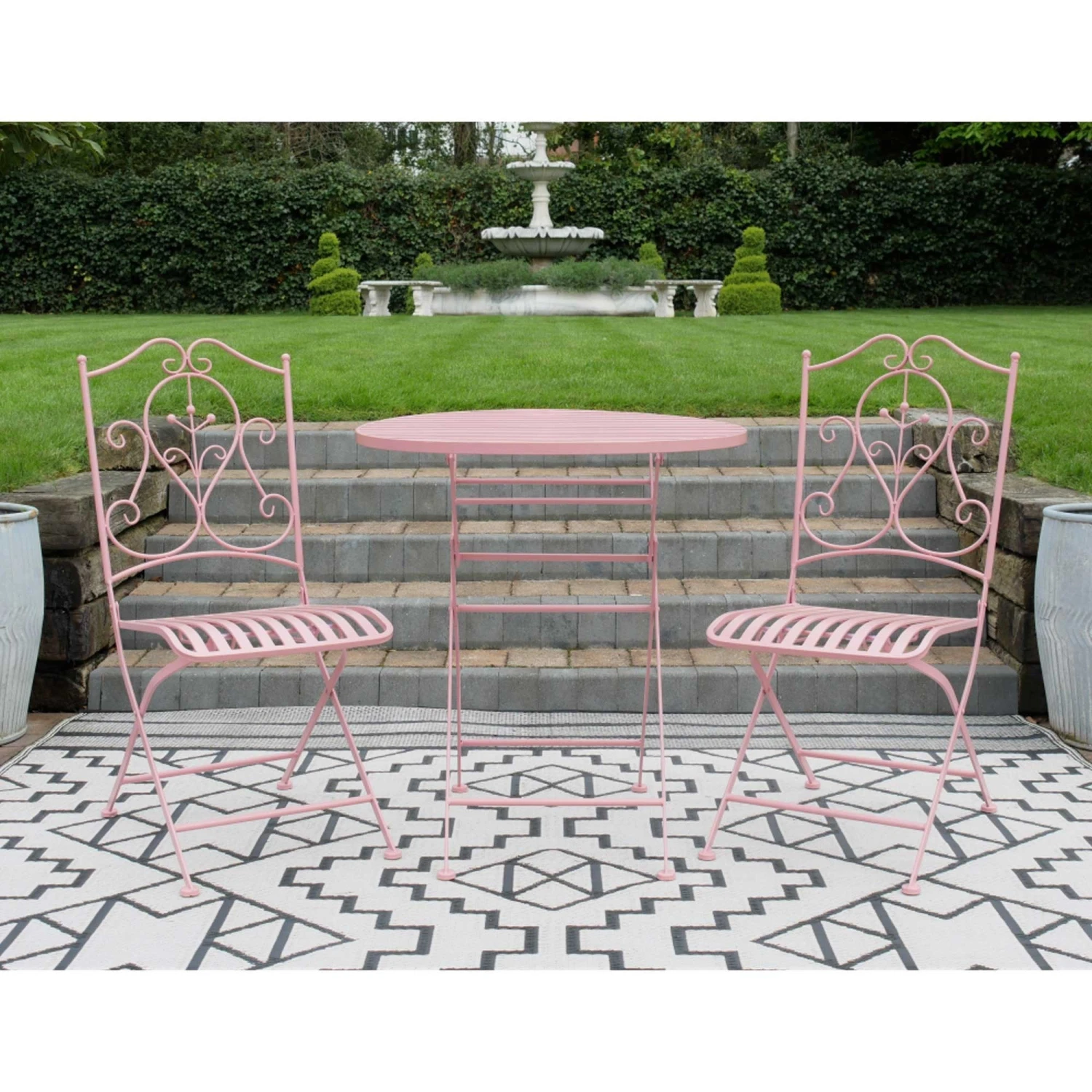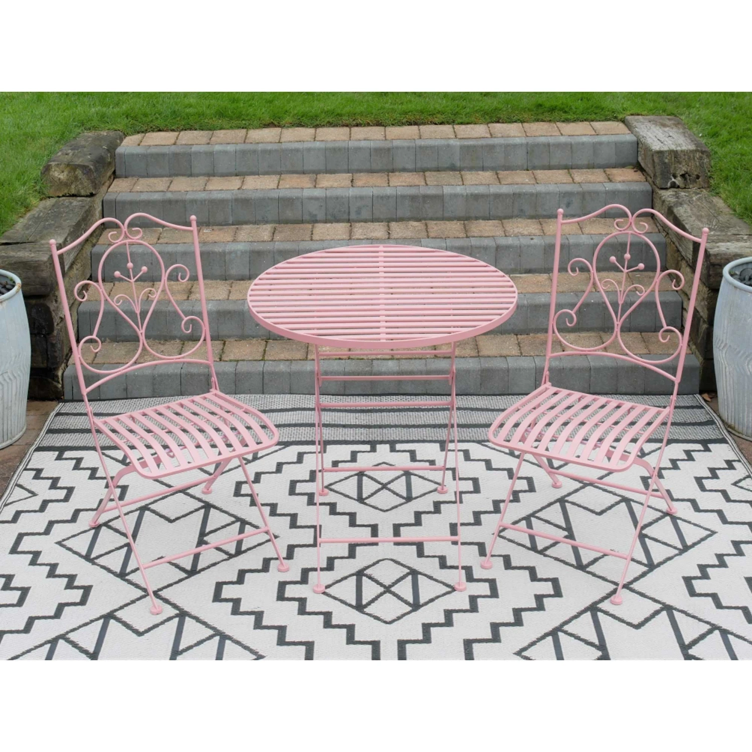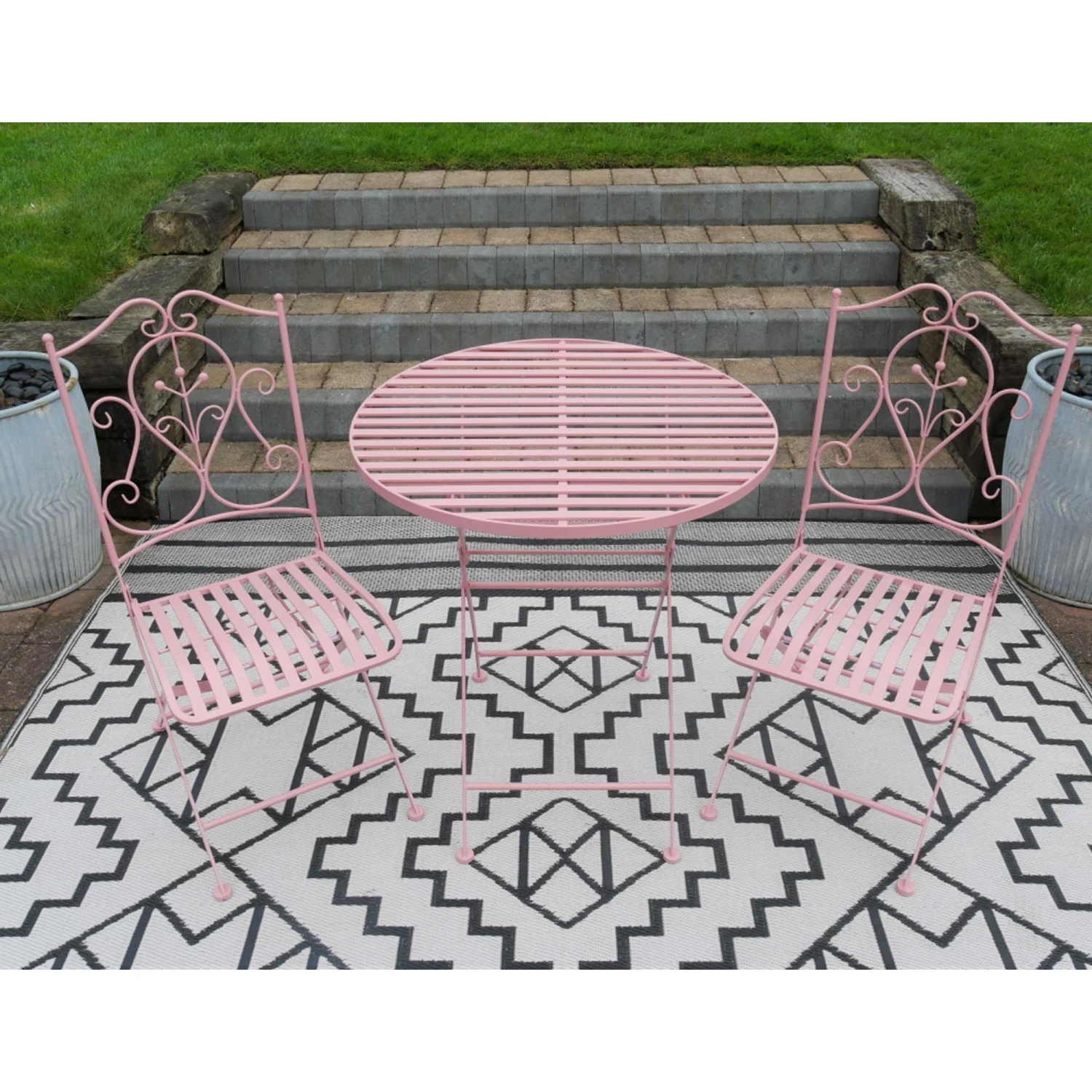 The ideal solution for small patio areas or gardens, comes this Powder Pink Garden Bistro Set. Wanting to enjoy the summer sun and dine outdoors for breakfast or dinner? It comes manufactured from metal in a powder pink finish and is complete with a round table and 2 chairs. Fully foldable to tuck away in the winter time, it’s a practical addition to allow you to get more out of your garden space.