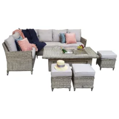 Edwina Special Grey Rattan Corner Sofa Dining Set With Lift Table