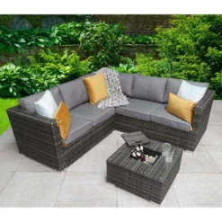 Georgia Grey Rattan Corner Sofa Set With Ice Bucket Coffee Table