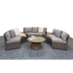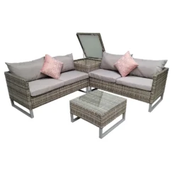Meghan Cream Grey Rattan 4 Seater Sofa Set With Supper Table