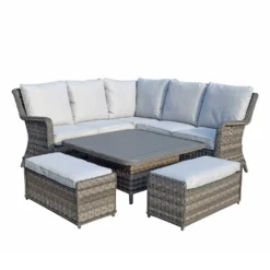 Mia Multi Grey Rattan Corner Sofa Dining Set With Lift Table