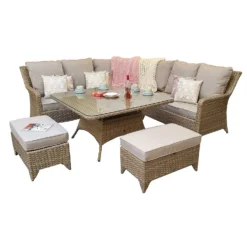 Sarah Rattan Corner Sofa Dining Set With Aluminium Top Lift Table