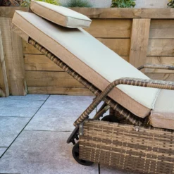 Savannah Natural Brown Rattan Single Sunlounger With Drinks Table