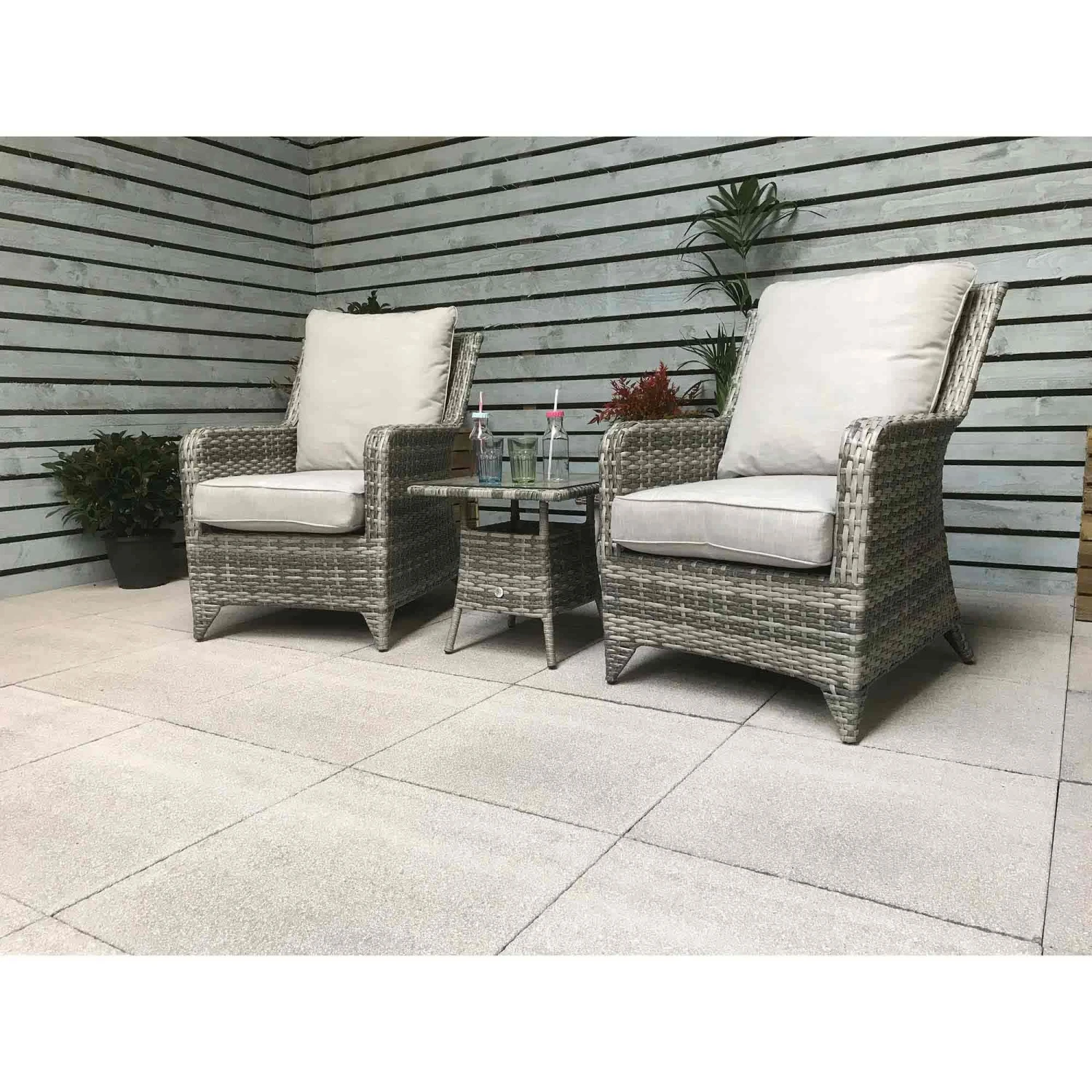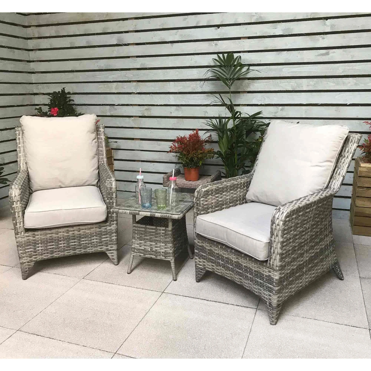 The Sarah Grey Rattan High Back Lounge Set would be an amazing garden set providing somewhere to sit and relax outside. This is great for a solo lounge in the sun reading a book and there is an extra seat for company. The end table is great for resting drinks and snacks on too. Scatter cushions should be kept in a dry place and the glass table should be covered in extreme heat.