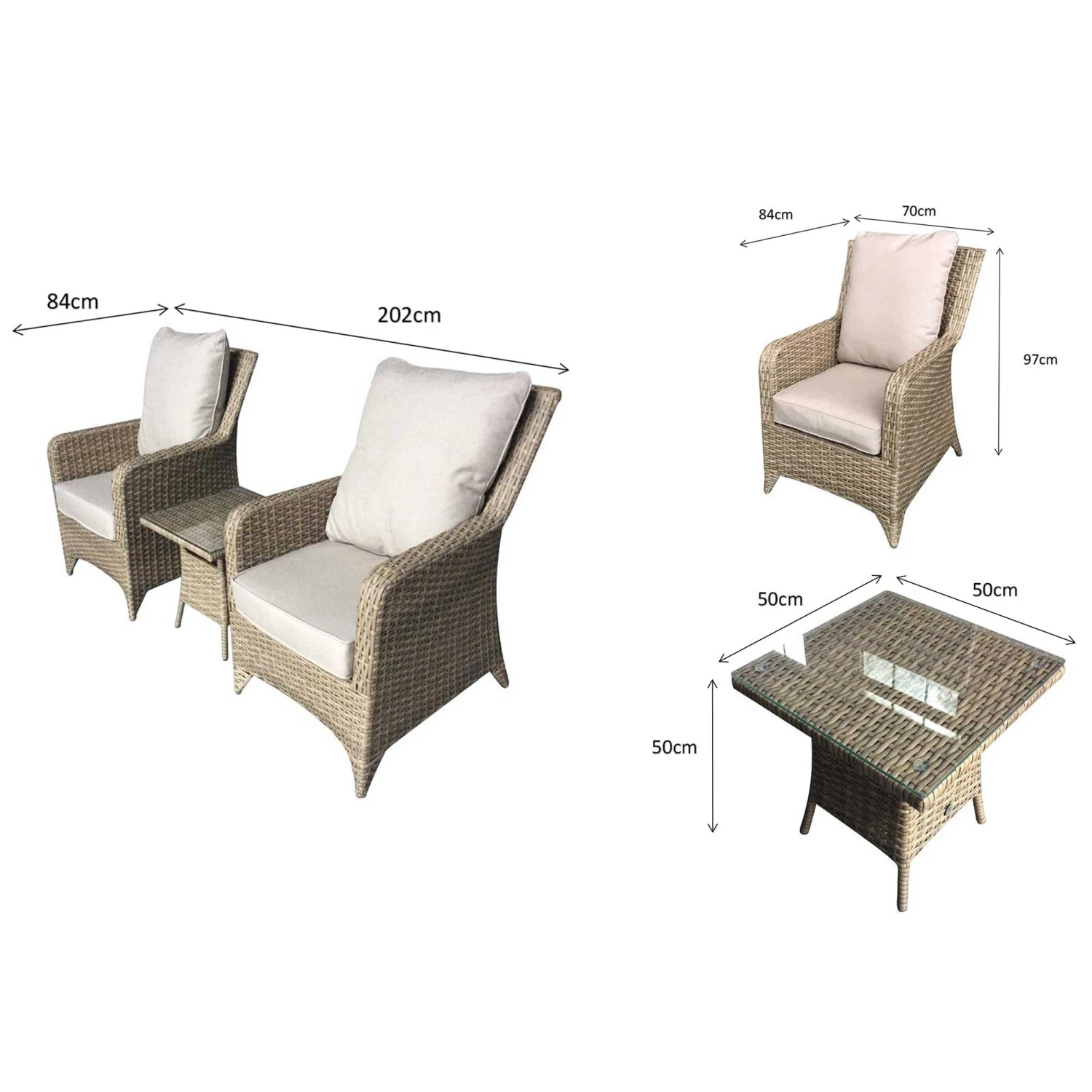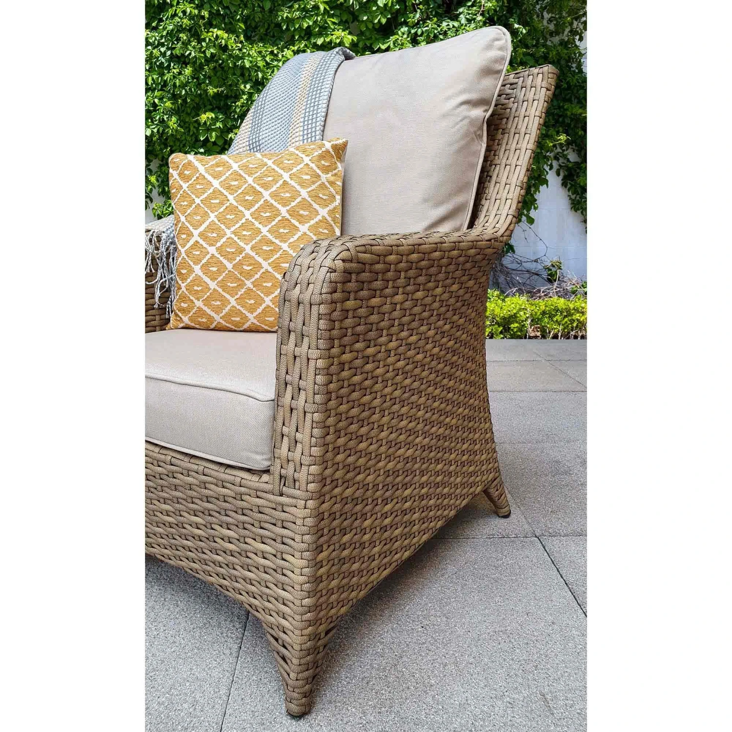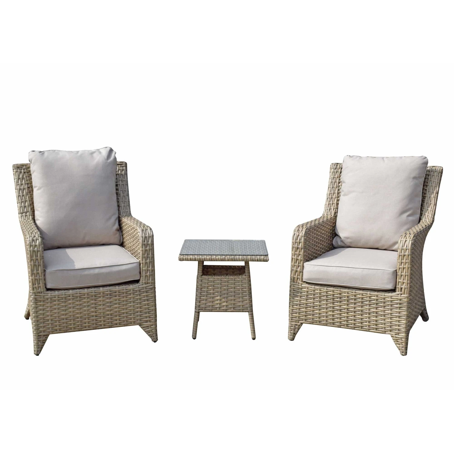 The Sarah Natural Rattan High Back Lounge Set would be an impressive addition to the garden. In a calming brown with beige cushions the set has a strong, sturdy aluminium frame with natural rattan. This could be great for reading a book on warm sunny days with a book in hand and an end table to place your drink on. Scatter cushions should be placed in a dry are when not in use and the table should be covered in extreme heat.
