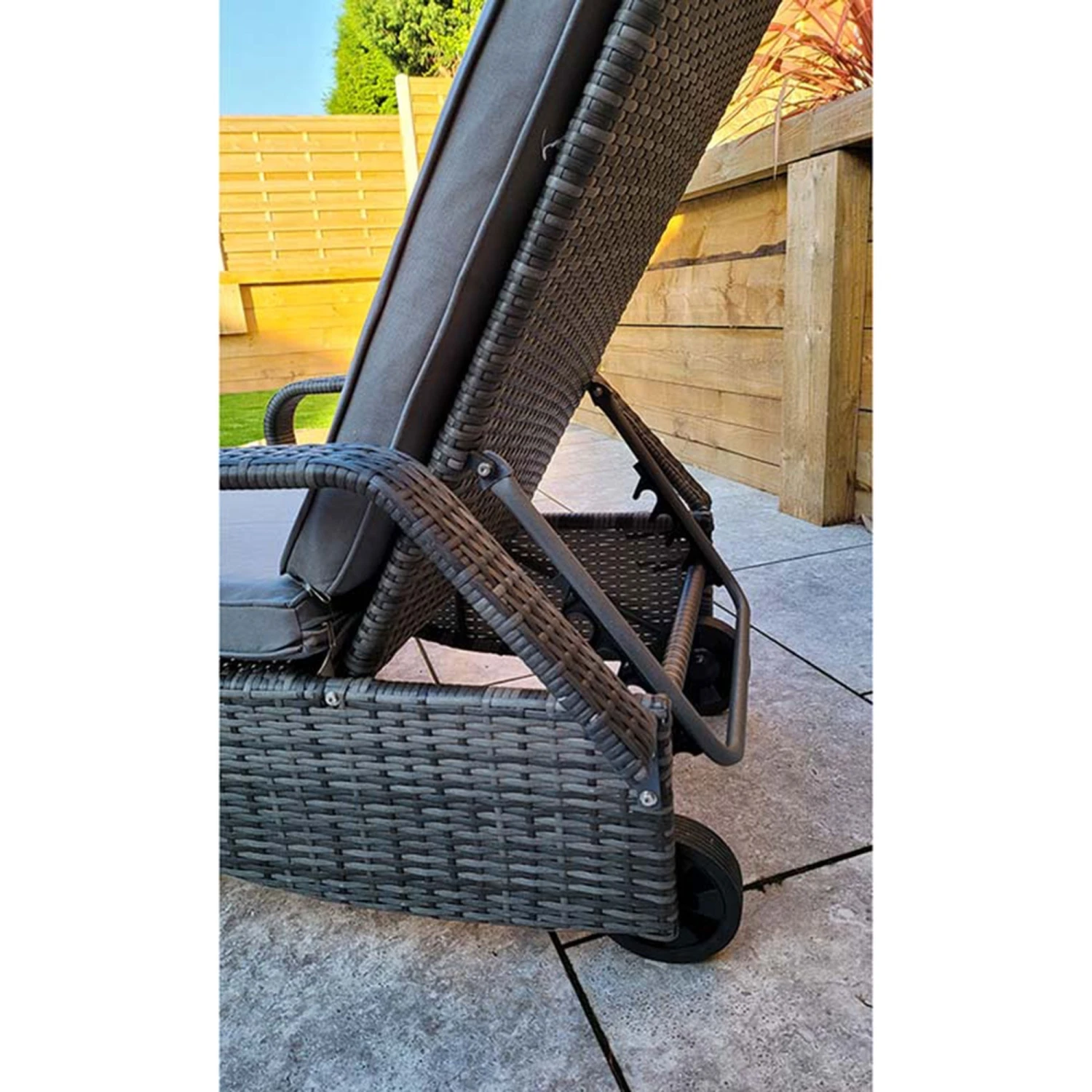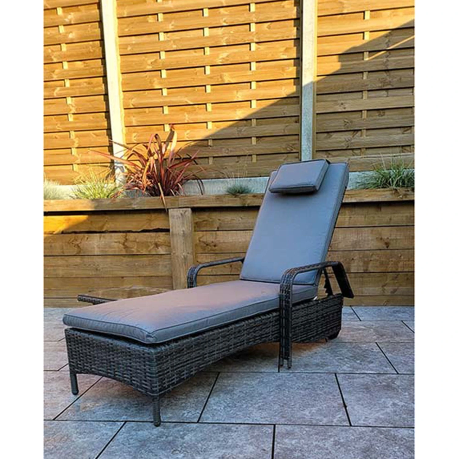 Savannah Grey Rattan Single Sunlounger With Drinks Table