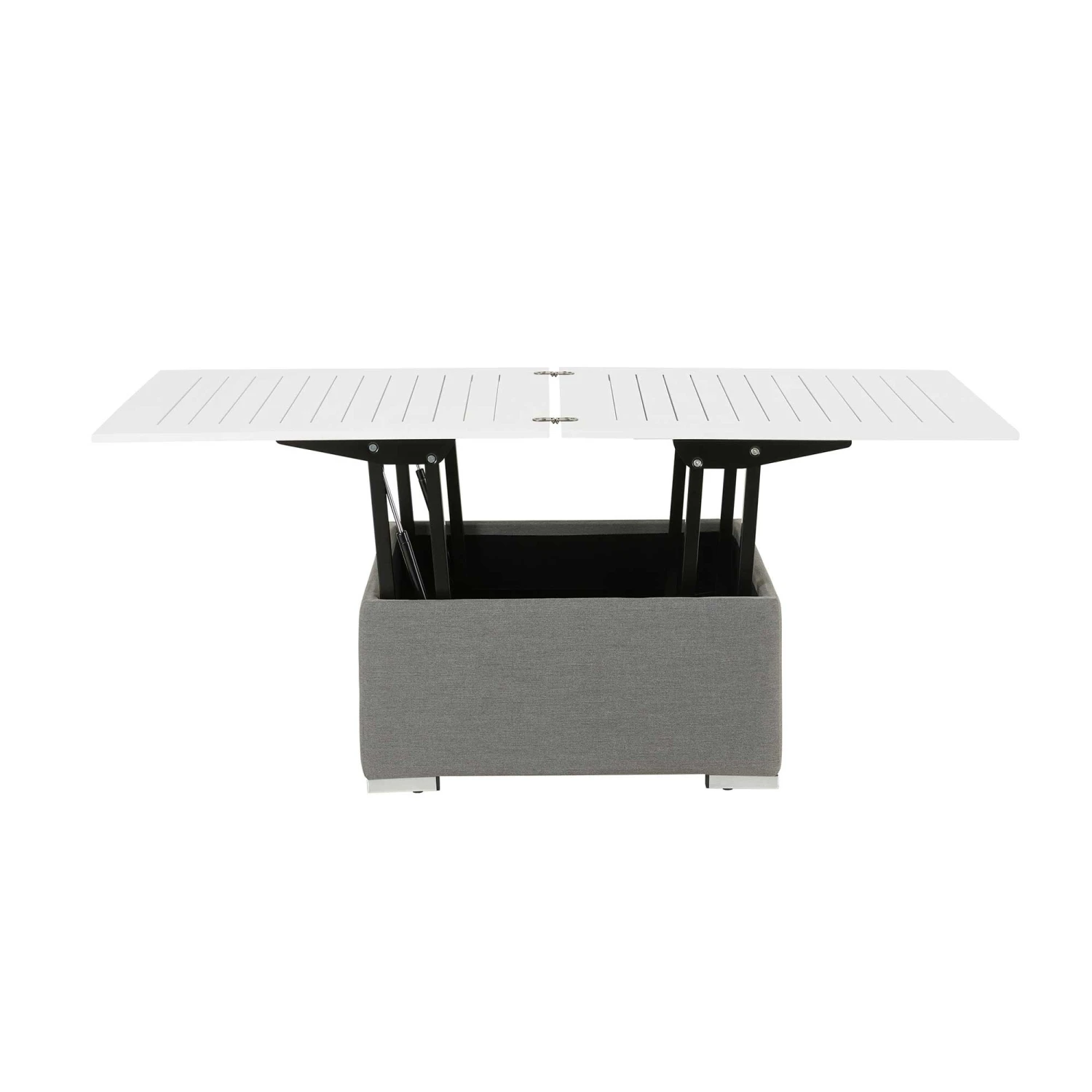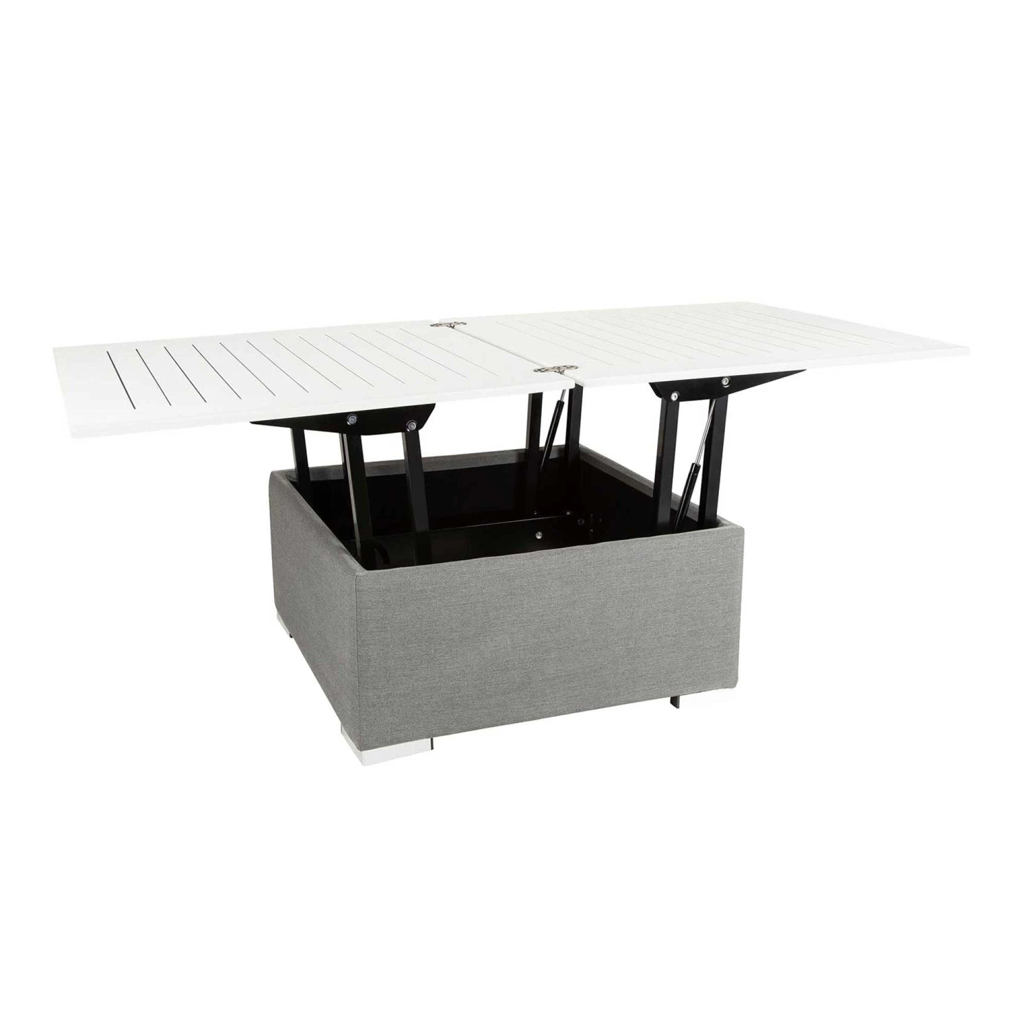 This White Outdoor Pop Up Table is the perfect addition to any garden furniture! Focusing on a clever pop up feature, this compact table can easily be extended to double your table space! This pop up table is finished in white and is made with an aluminium rust proof frame, suiting all weather types. Also available in Grey.