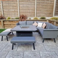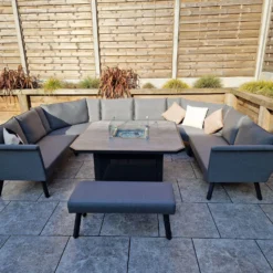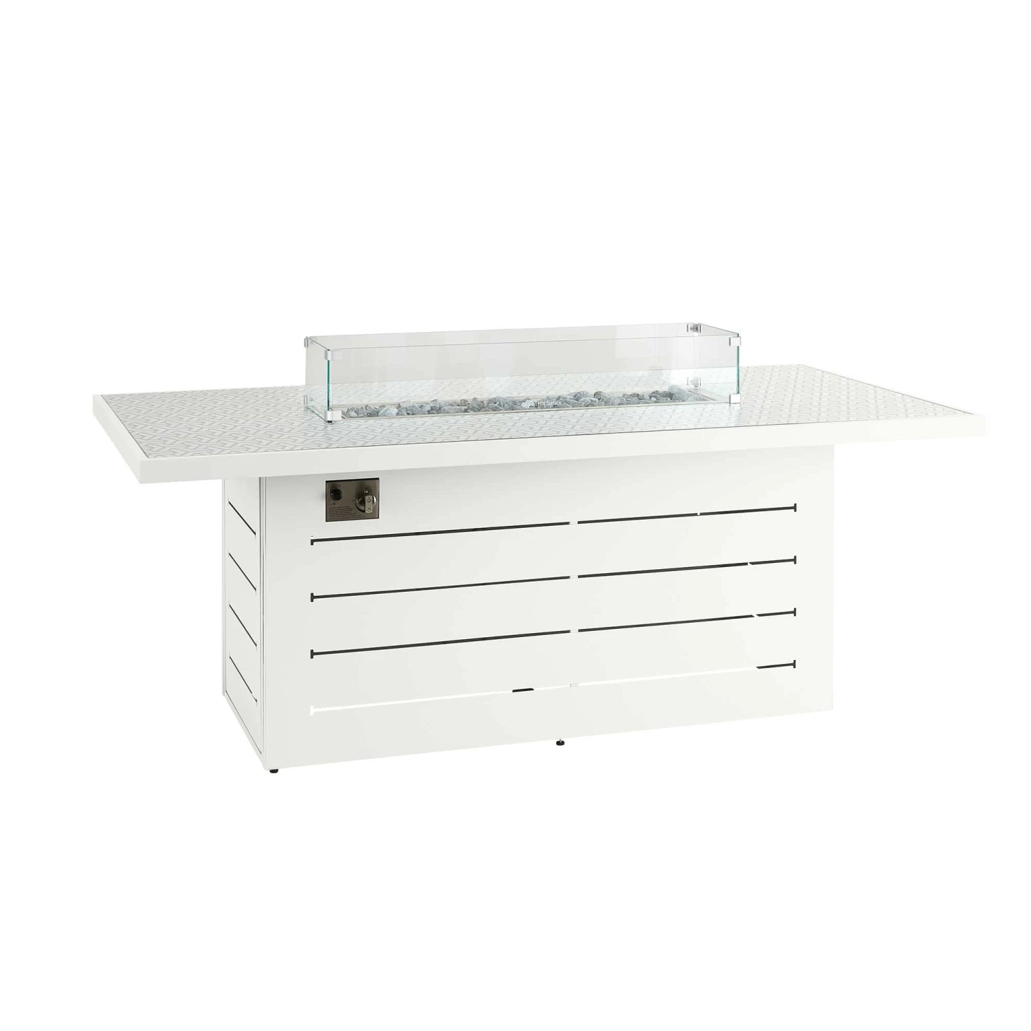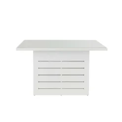 Garden time couldn’t be more enjoyable with this White Patterned Top Rectangular Outdoor Dining Table with Firepit! Perfect for gatherings of up 6 people, this rectangular dining table with firepit keeps you warm while you watch the sunset! This outdoor dining table also features a stunning patterned table top and sleek white finish. This product is CE certified and fitted with 10mm tempered glass. Also available in Grey.Â