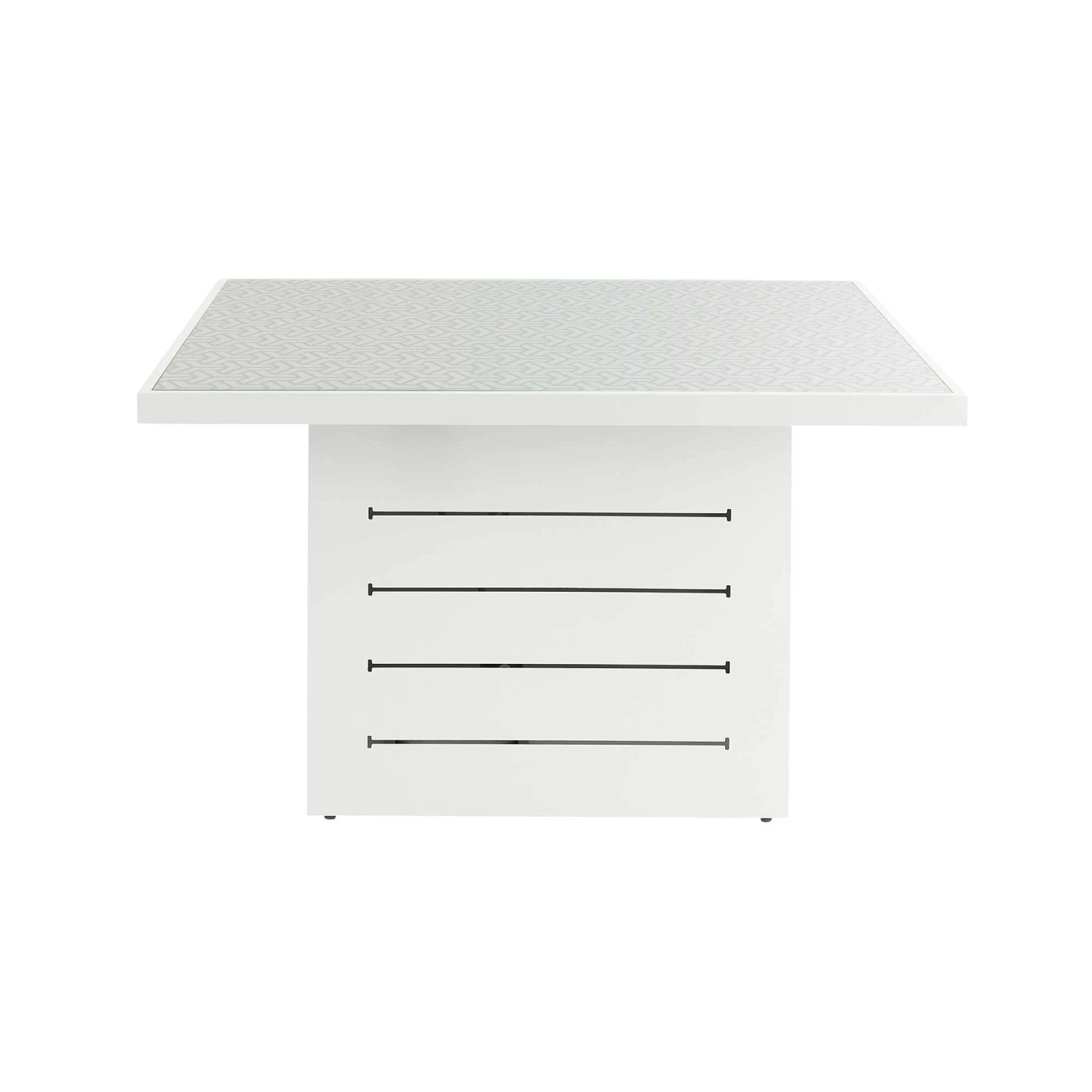 Enjoy meal times in the sunset with this White Patterned Top Square Outdoor Dining Table! Seating up to 4 people, this dining table is suitable for outdoor use, guaranteed to withstand all weather conditions. The dining table features a unique table top, making family gatherings even more enjoyable! Also available in Grey.