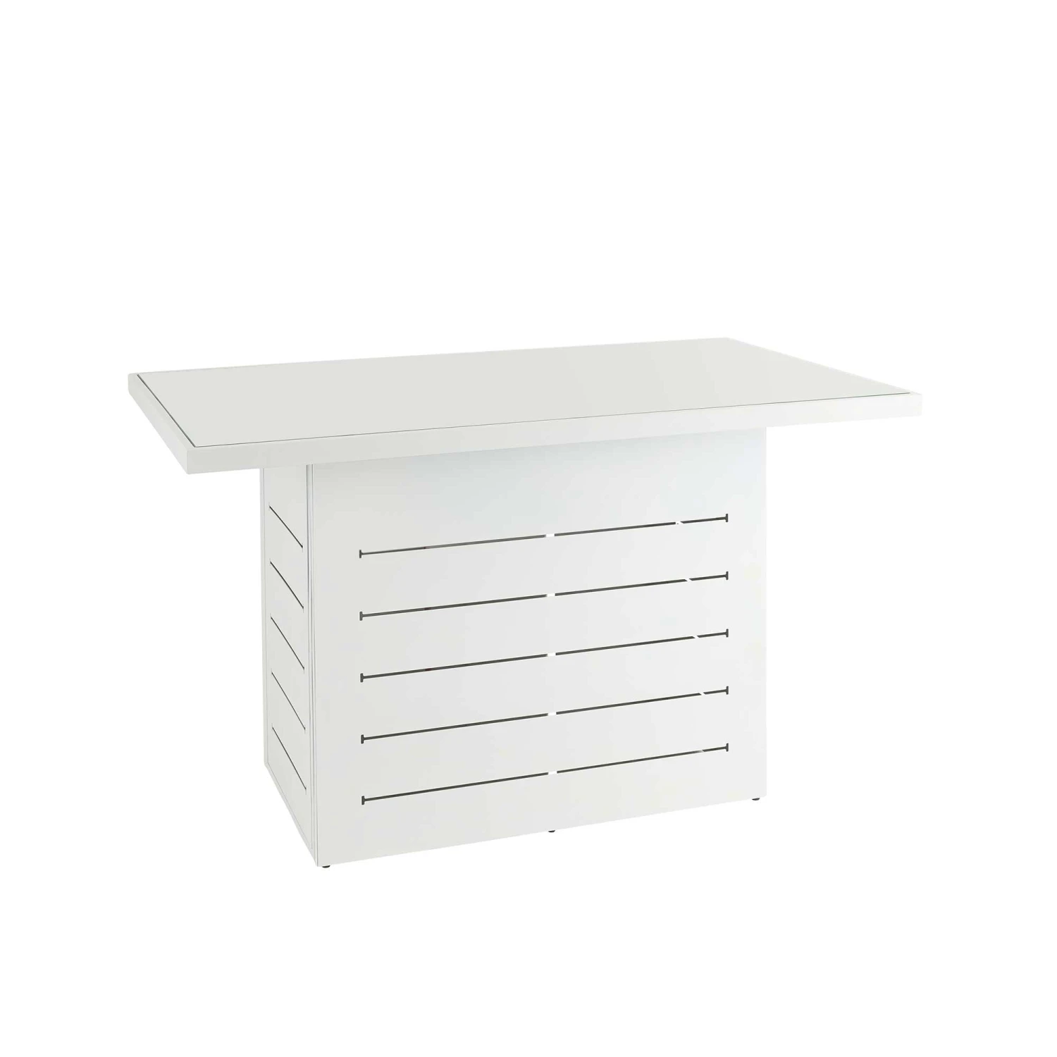 Serve up sunshine cocktails and sangrias on this lovely White Plain Top Outdoor Bar Table! Finished with a clean and crisp white with plain top, this outdoor bar table is the ideal addition to your garden furniture! This bar table can seat up to 6 people for any special gathering and is made to withstand all weather conditions. Also available in Grey.